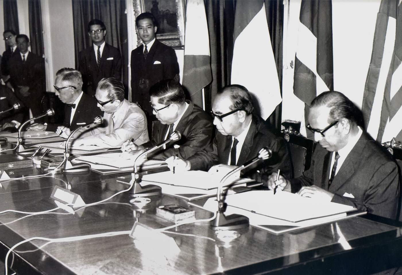 The five ministers - Adam Malik of Indonesia, Tun Abdul Razak of Malaysia, Narciso Ramos of the Philippines, S Rajaratnam of Singapore and Thanat Khoman of Thailand - signed the Asean Declaration.