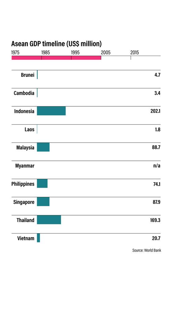 “We do not want to be dictated from Europe, or from America, or from Moscow, or from Peking [China], or from anywhere else,” Thailand’s foreign minister Thanat Khoman, another founding member, said on the day of Asean’s formation.