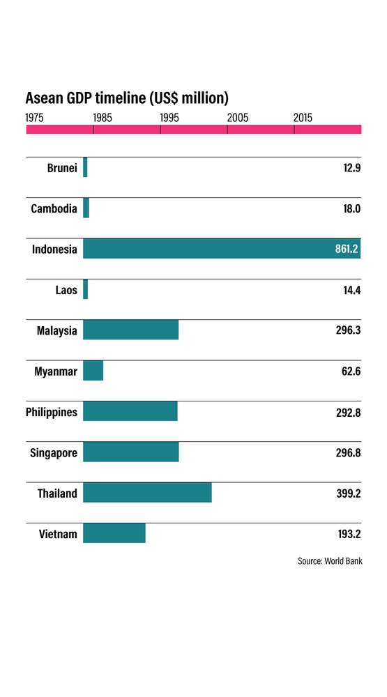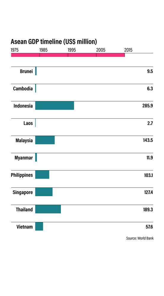 Fifty years on, Asean boasts an impressive collective GDP of US$2.5 trillion and was the sixth largest economy in the world in 2016, according to the World Bank.
