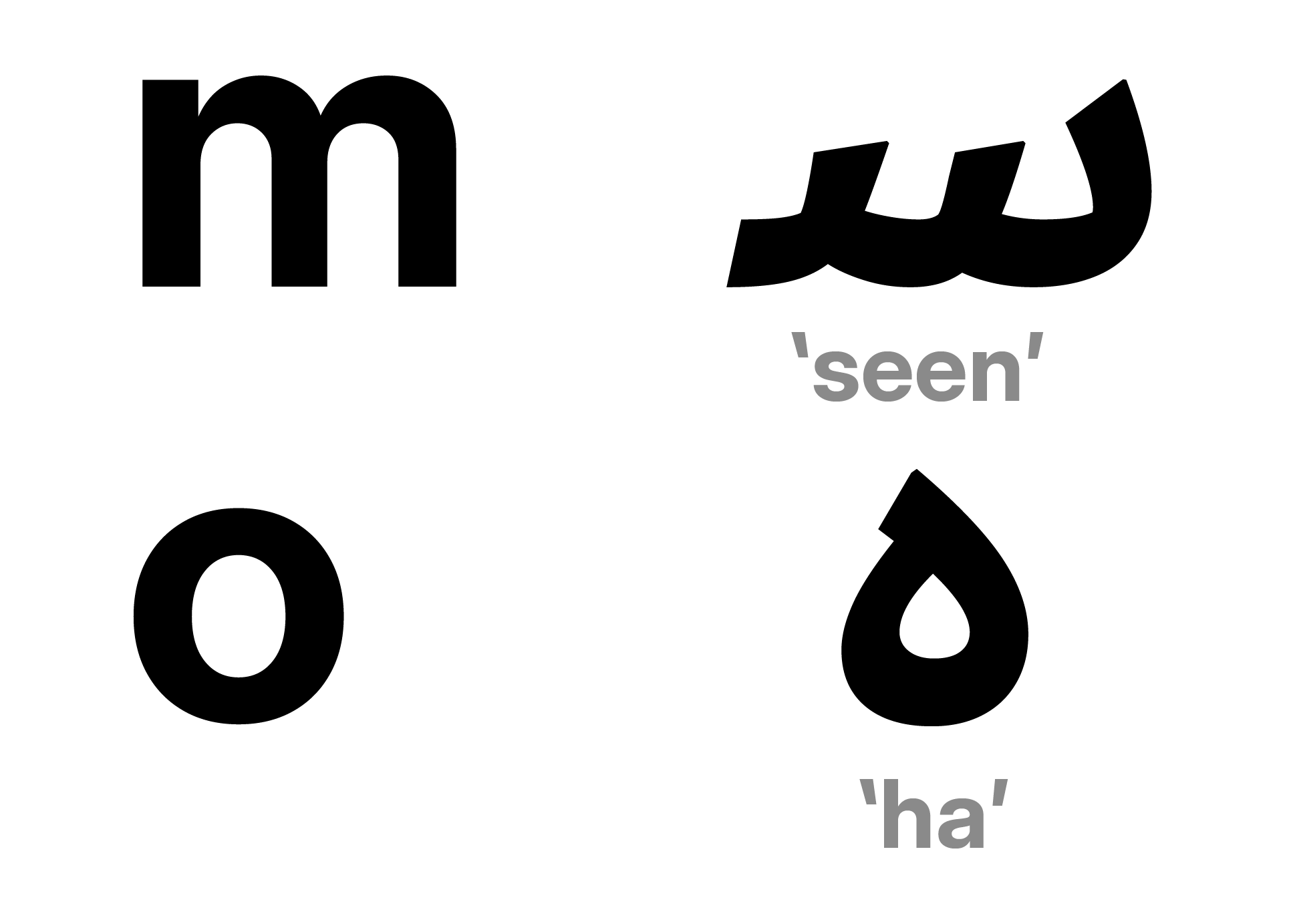 In some proposals, Latin letters were also appropriated to resemble Arabic counterparts. The letter m’ for instance was flipped to resemble the Arabic letter seen . The o was used in lieu of the letter ha”.