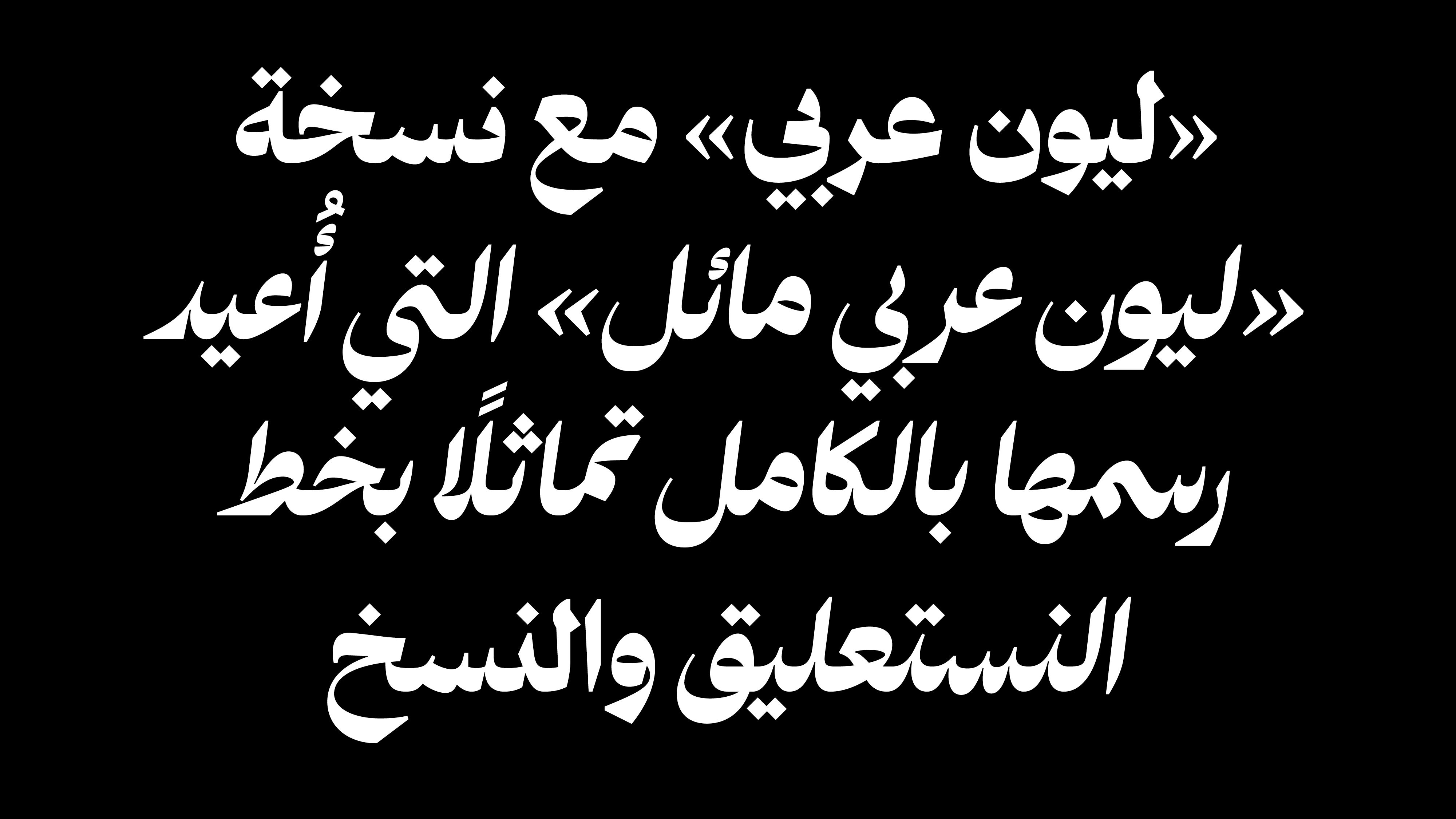 Ibrahim says the font is her “go-to” whenever she needs to use an italic Arabic typeface. Of course, Arabic has no italics, but as Apelian and Morcos devised the two cursive fonts under Lyon Arabic, they sought to dedicate one of them to address this gap. “What we did is to create this italic font by using information from styles that have a slant naturally in calligraphy,” Apelian says.