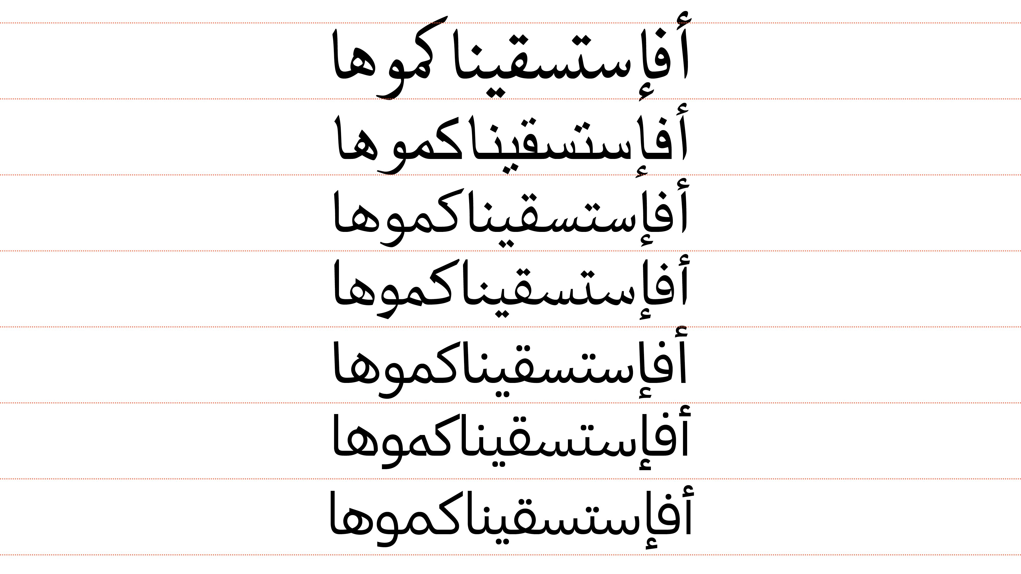 Typeface variations inspired by Ibn Muqla's naskh calligraphy. Photo: Khajag Apelian