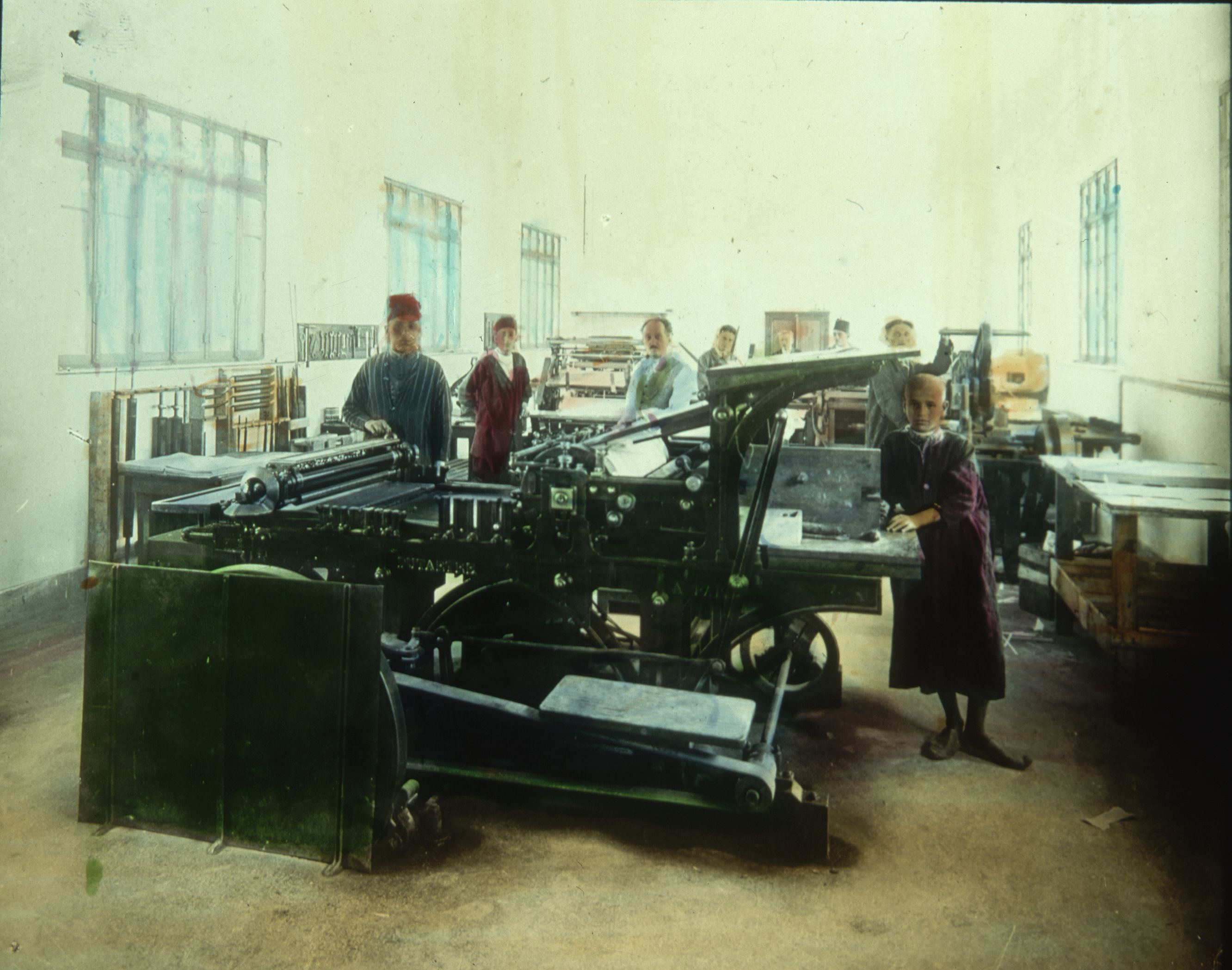 Staff work on the presses at a printing plant in Rabat, Morocco, believed to be in 1899. Getty Images