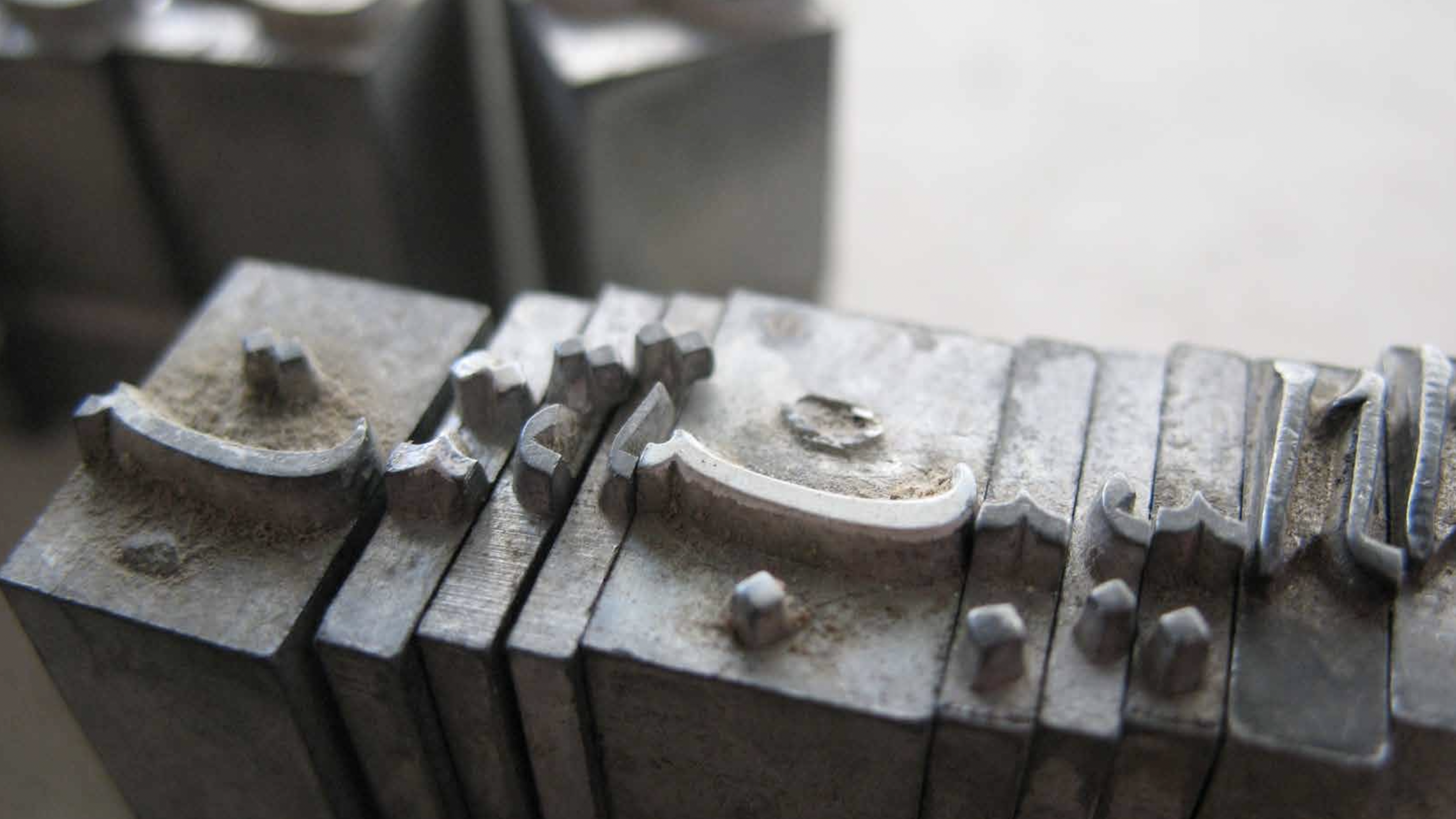 Arabic letters on metal type used in printing. Photo: Khajag Apelian
