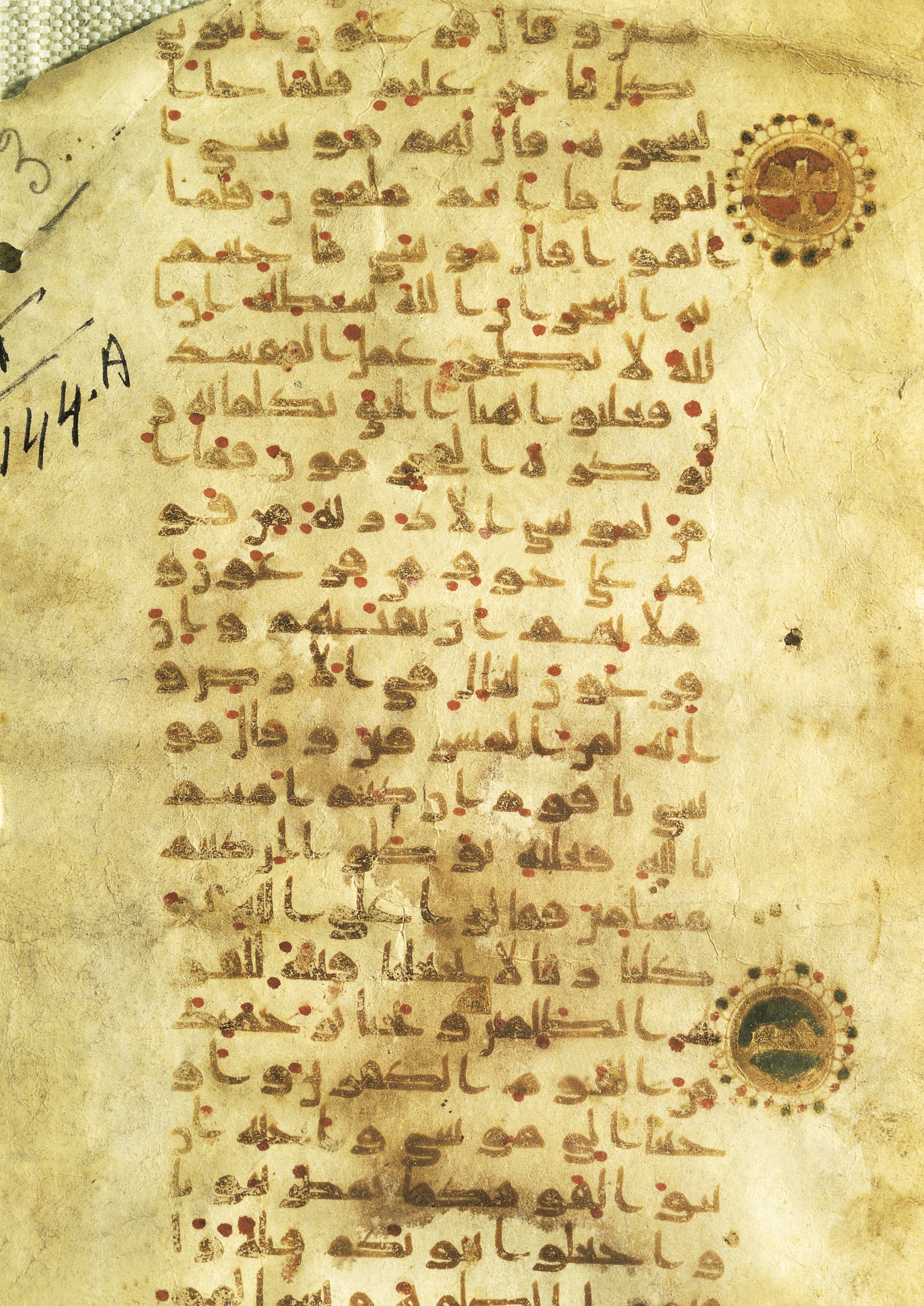 A scroll fragment of the Quran from the eighth or ninth century, during the Abbasid period, written in Kufic style calligraphy. Getty Images
