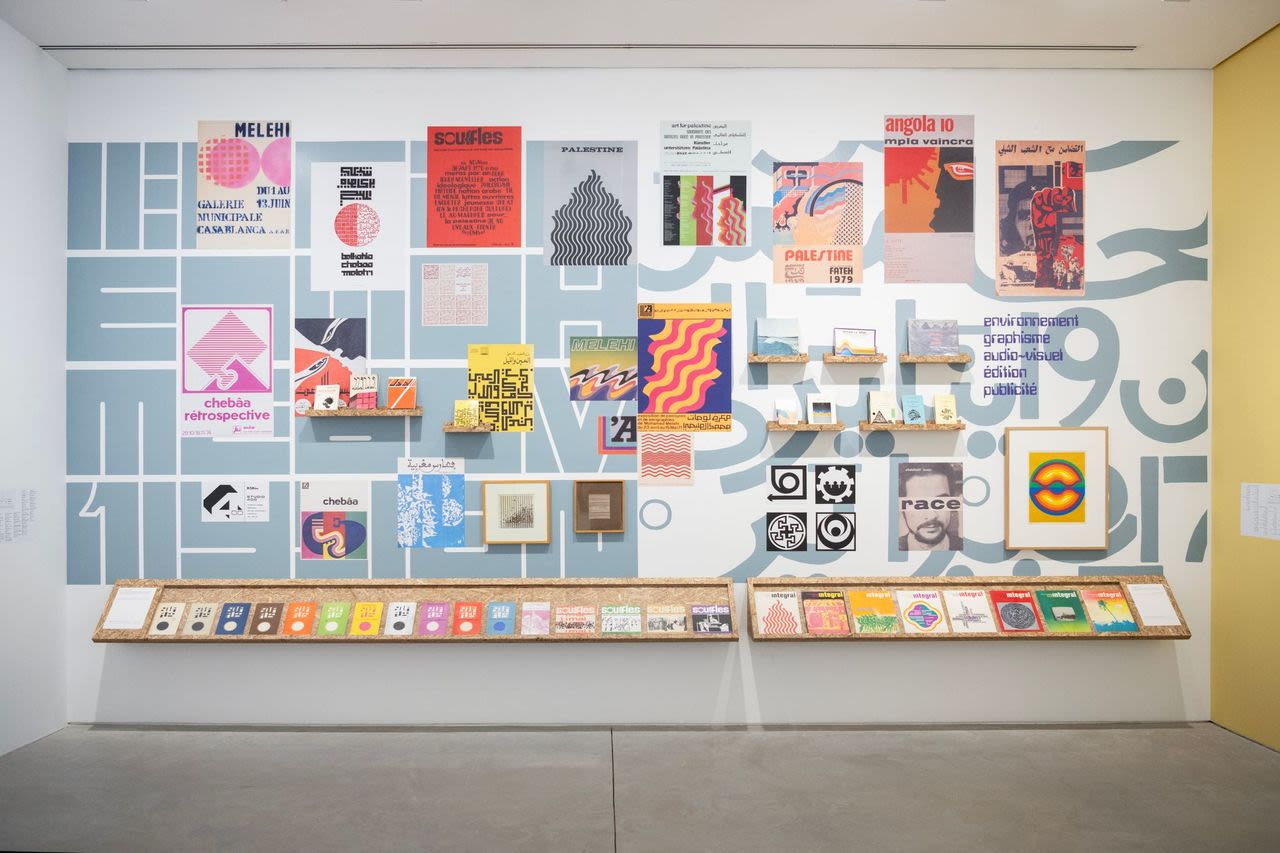 A display of work from The Casablanca Art School, including that of Mohammed Chabaa, at Sharjah Art Foundation. Photo: Motaz Mawid