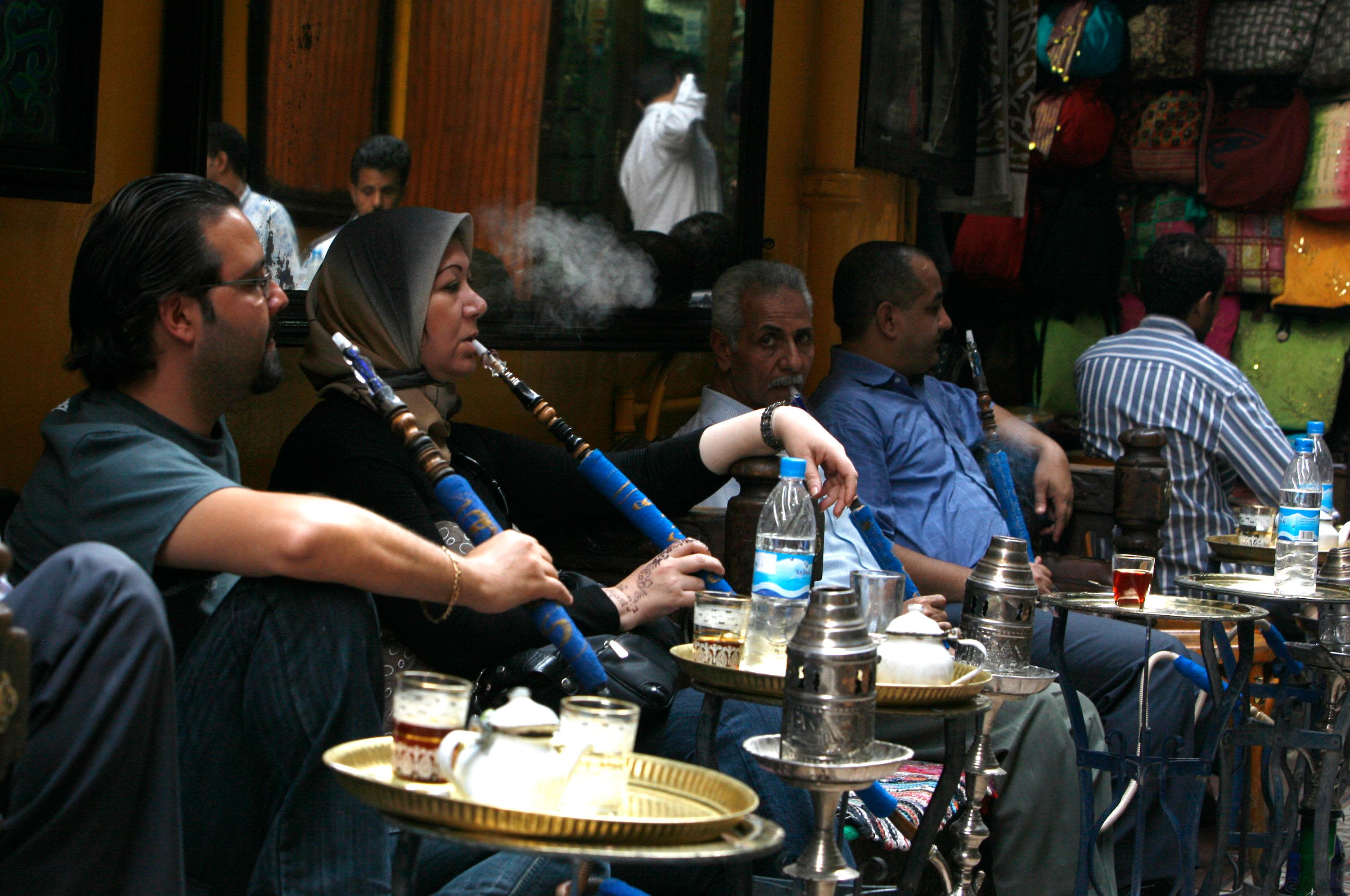 But a seat at El Fishawy is a rare commodity. It is perhaps one of the few places in Cairo where locals, Arab visitors and western tourists sit together in close proximity, loudly chatting away in a variety of languages and Arabic dialects. Their conversation is carried out between sips of tea from small blue metal pots or cups of black Turkish coffee infused with cardamom.