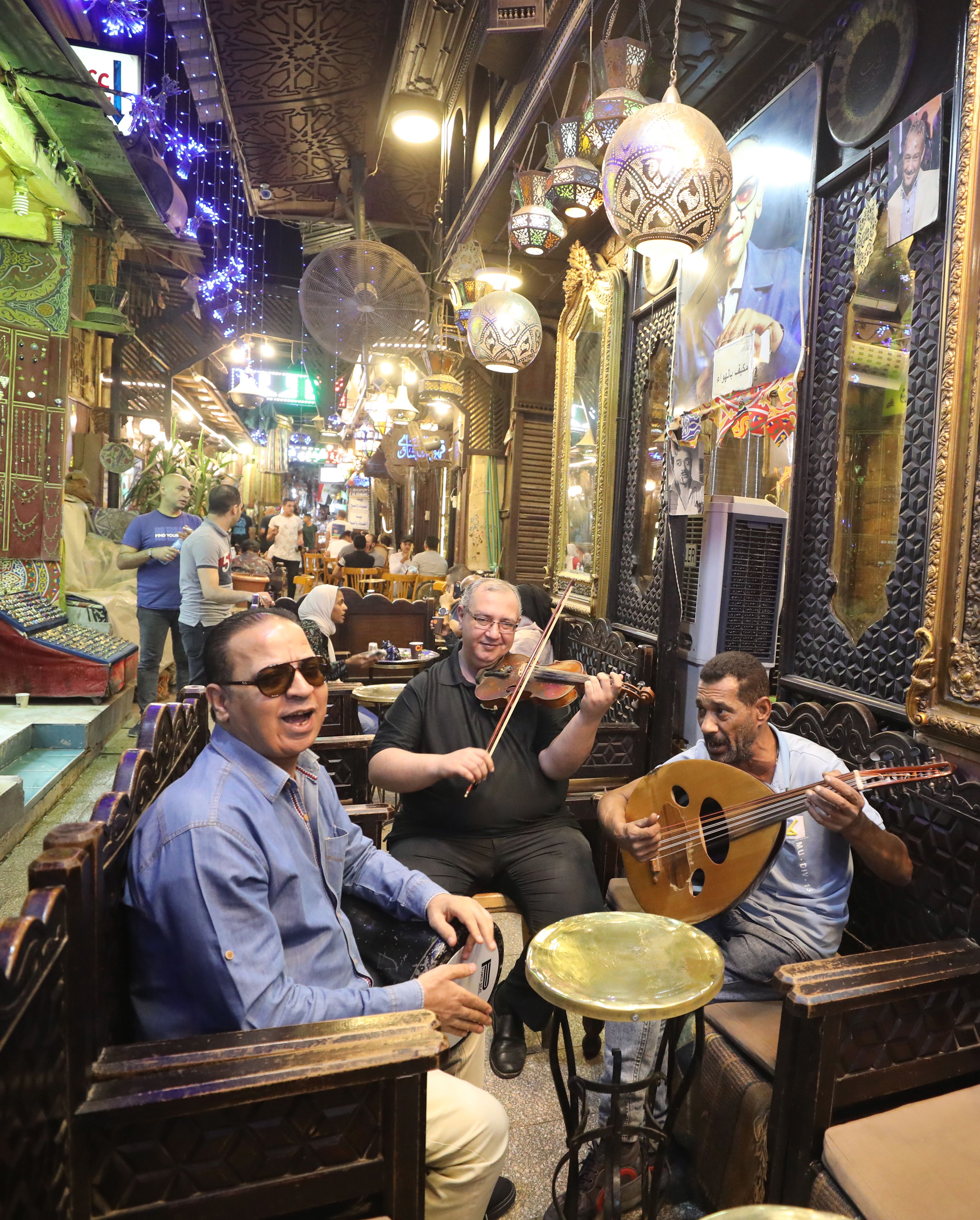 Musicians play their instruments at El Fishawy cafe in old Cairo. EPA