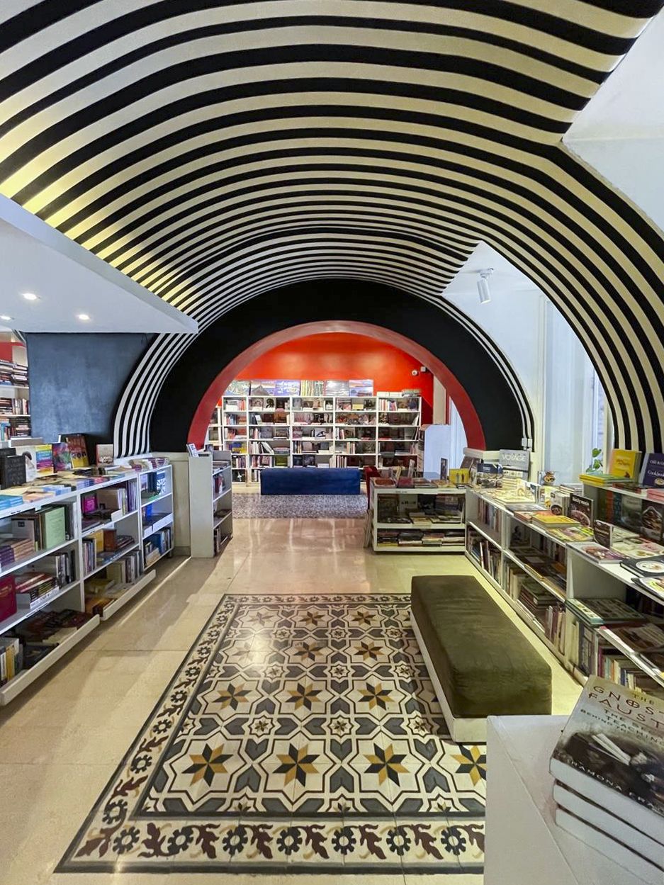 The modern interior of books@cafe contrasts with the building's traditional exterior. Khaled Yacoub Oweis / The National