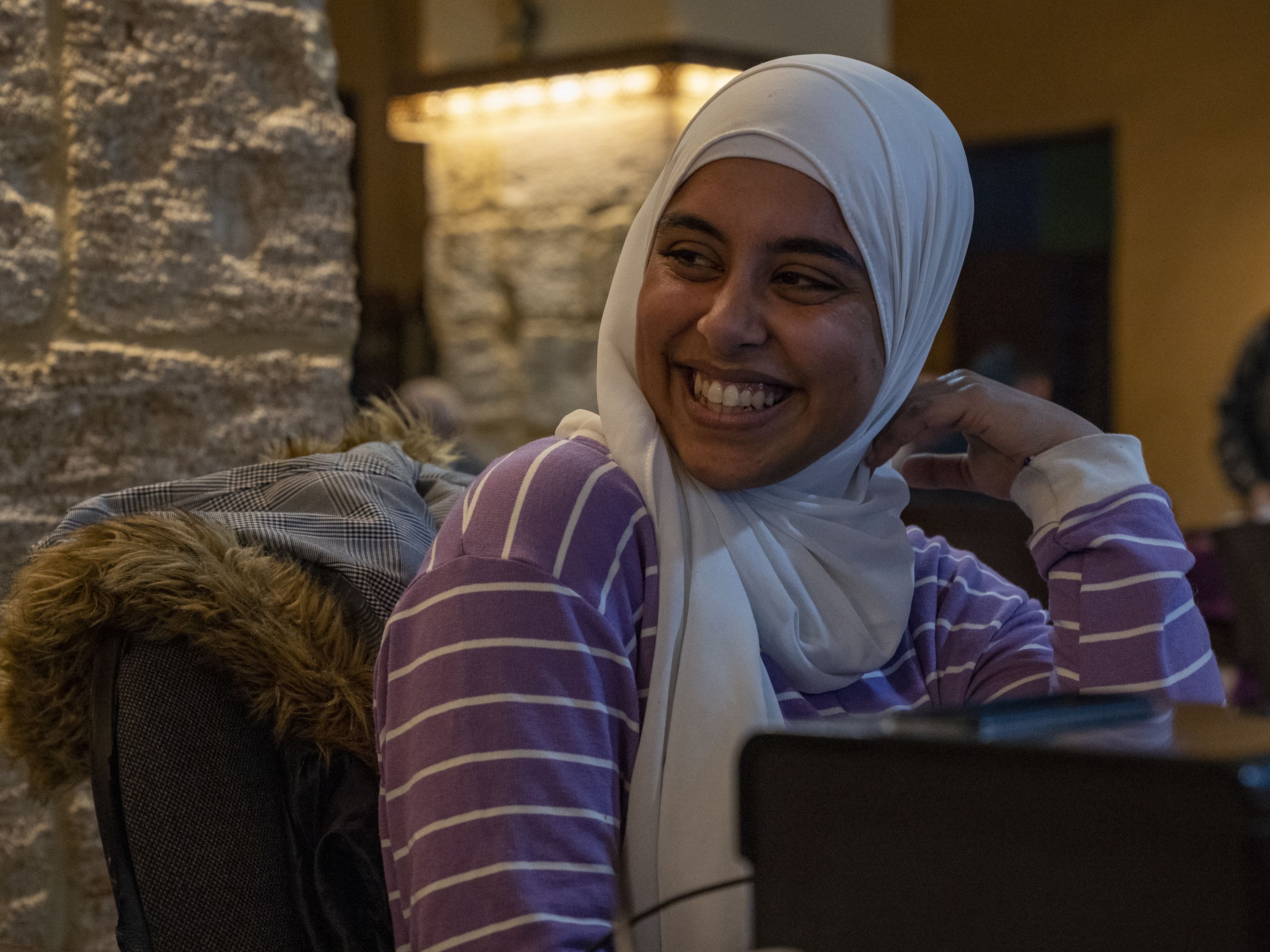 A young man sitting nearby agrees with him. But unlike Al Rawi, Ahmad isn’t there to merely watch people come and go.