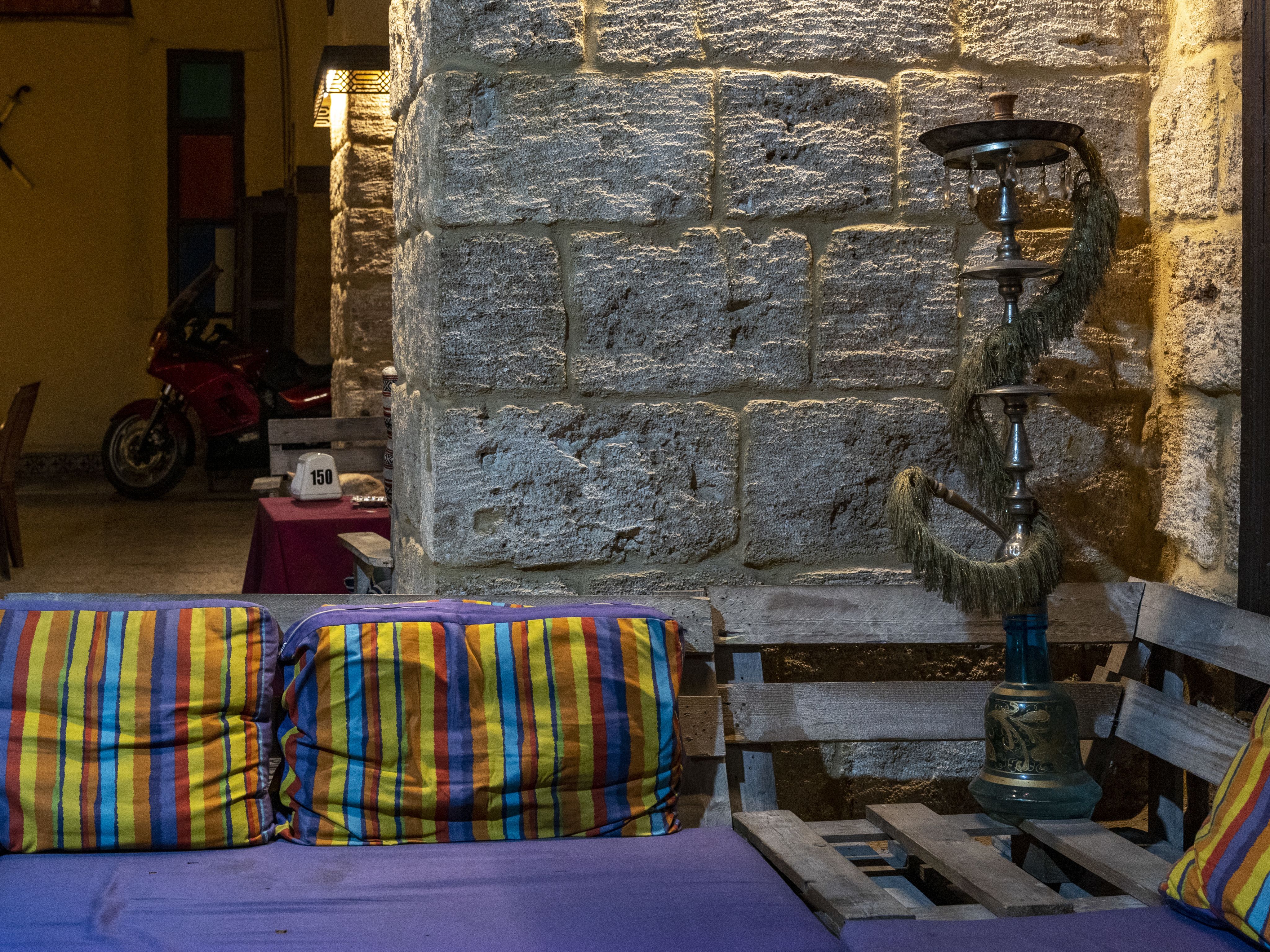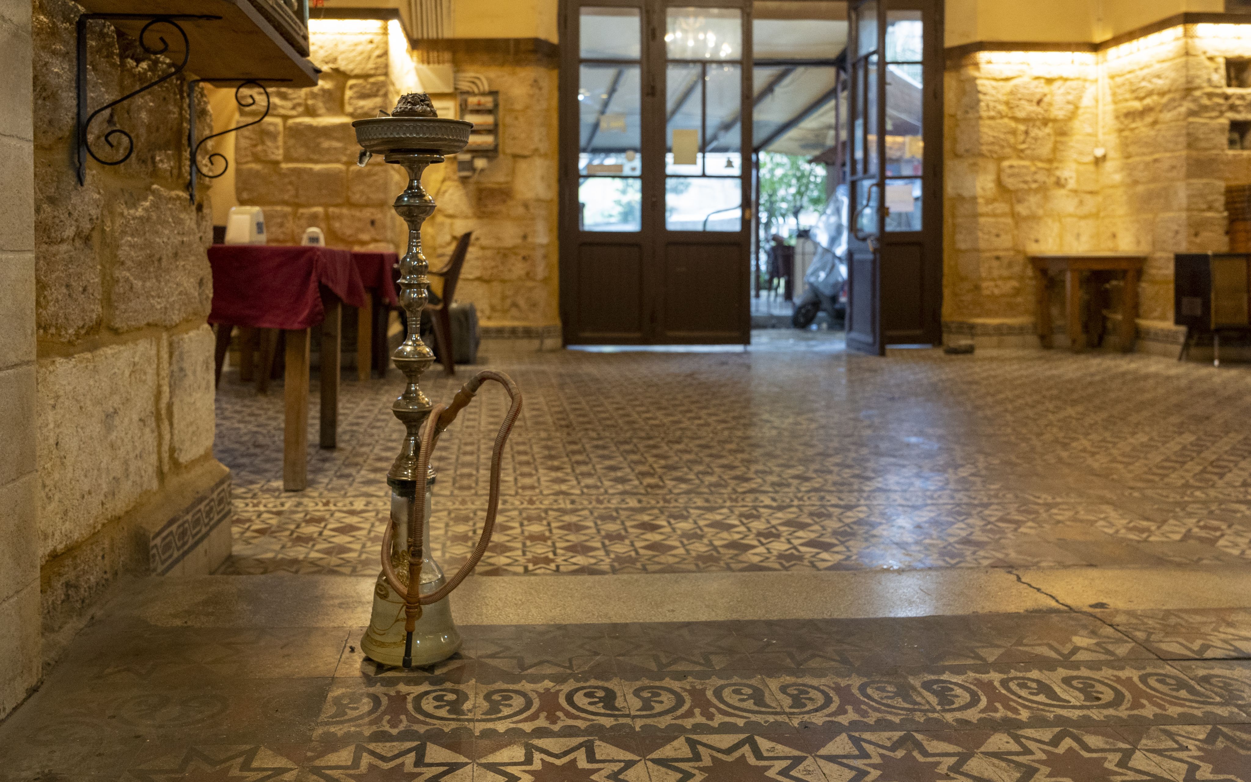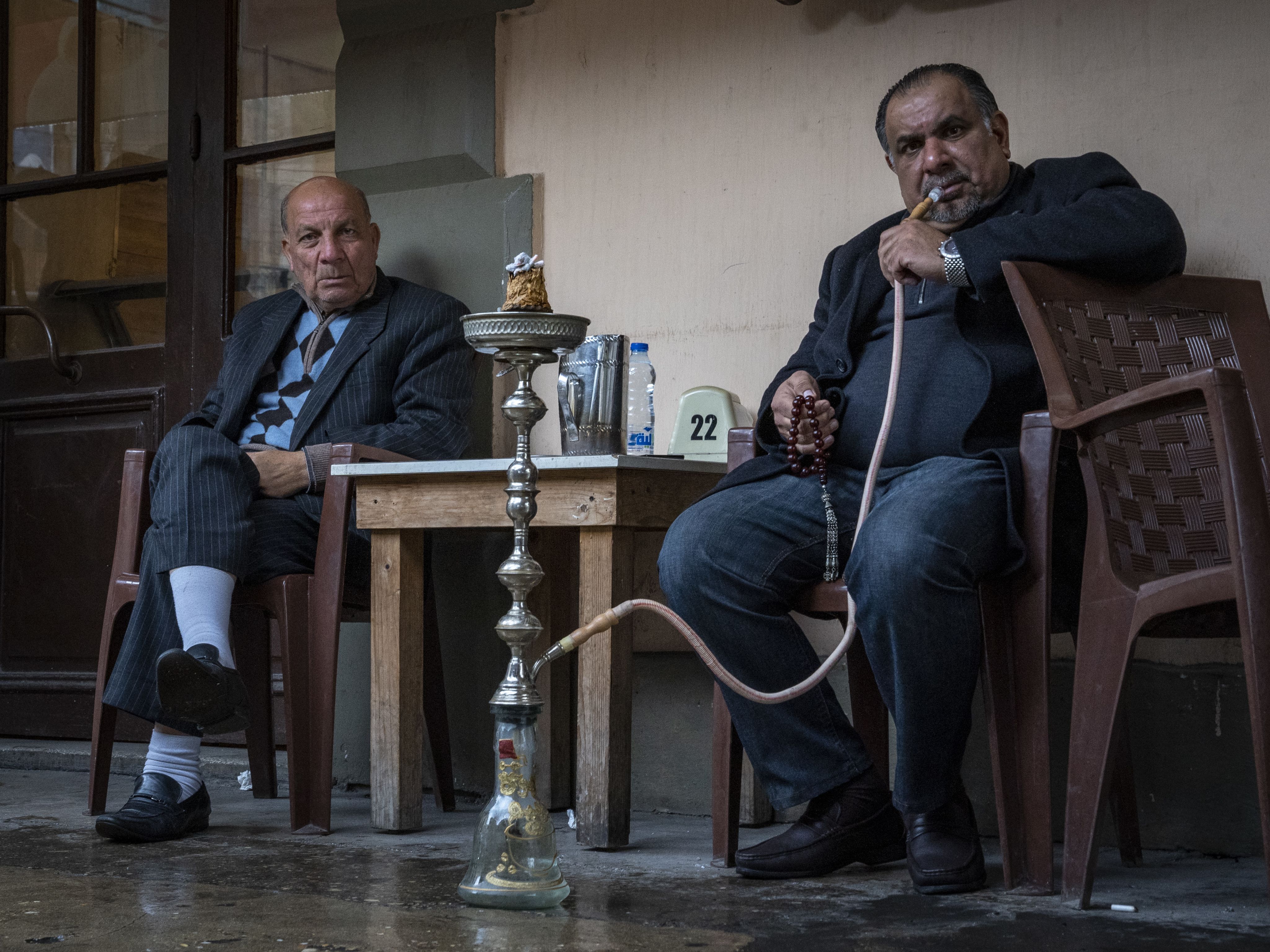 Each day, older men gather for hours under the cafe’s plastered Ottoman domes to smoke ajami-style argileh, the soaked tobacco stacked high with coals placed directly on top, play card games or backgammon, and gossip about the country’s political developments.