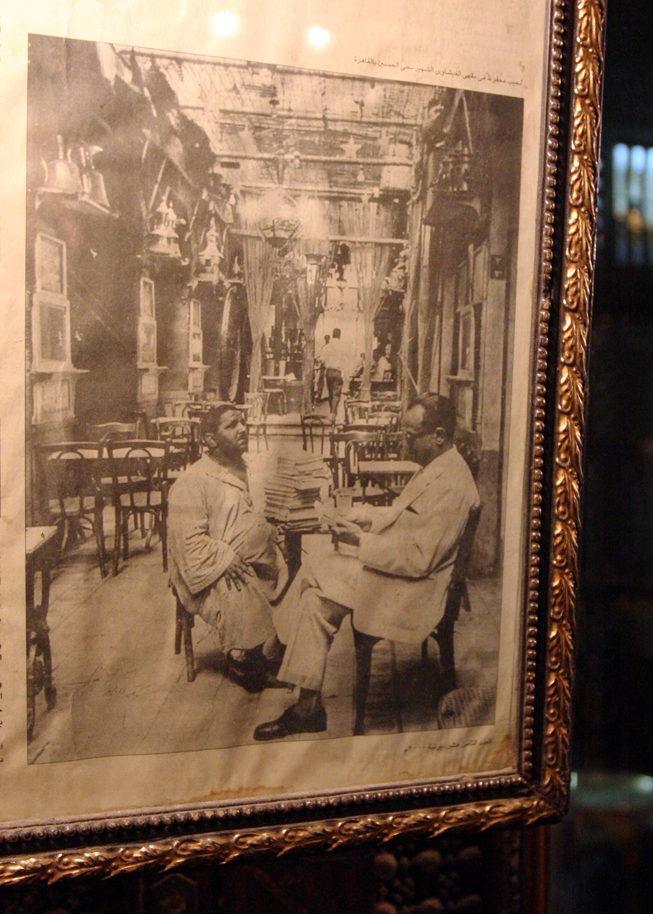 A photo of Naguib Mahfouz at El Fishawy hangs in the cafe. The National
