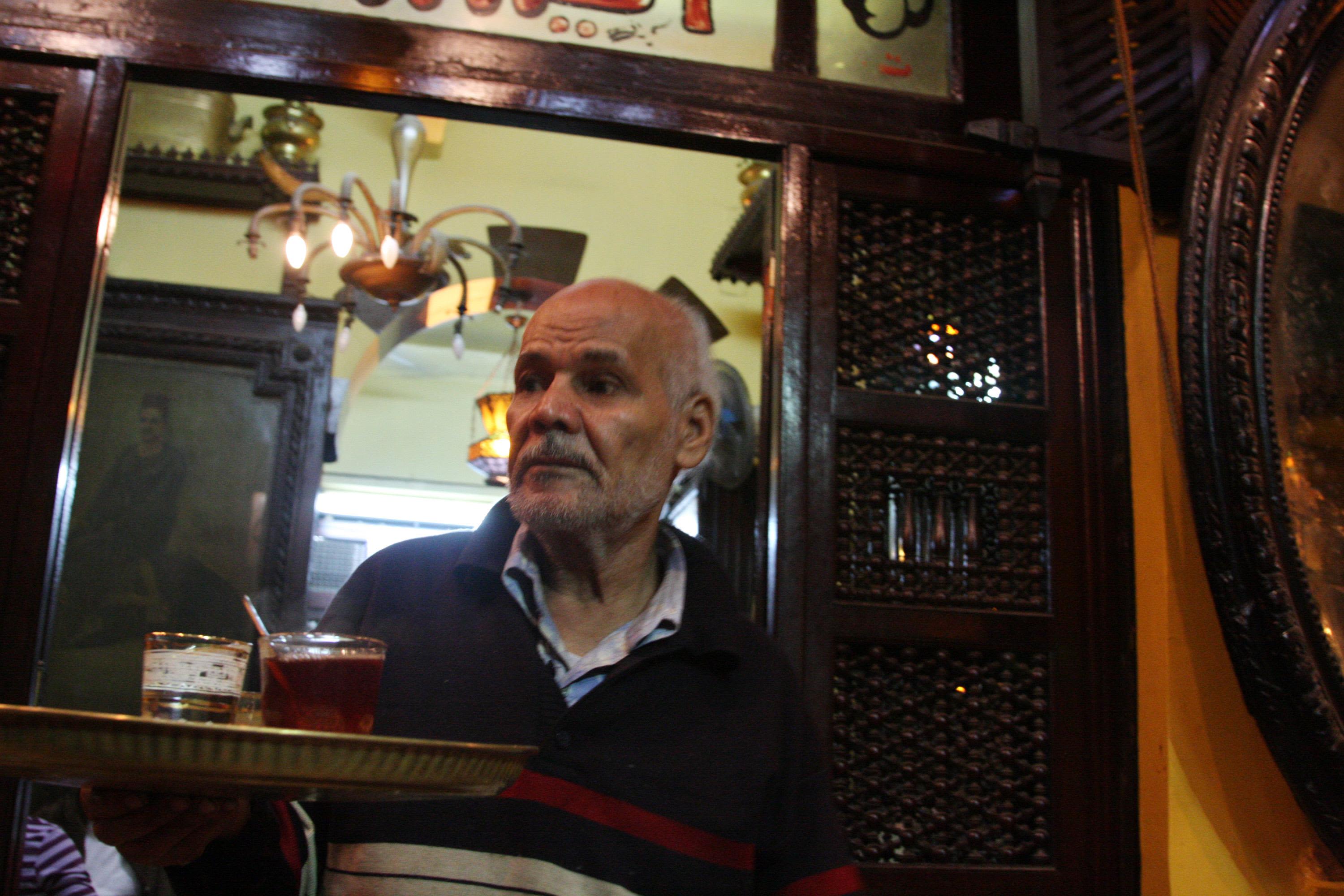With patrons seated on both sides of the alley, El Fishawy’s business-like waiters, who are distinguished by their blue jackets, often yell at pedestrians and the hawkers to move along so as not to bring pedestrian traffic to a halt in the narrow alley.
