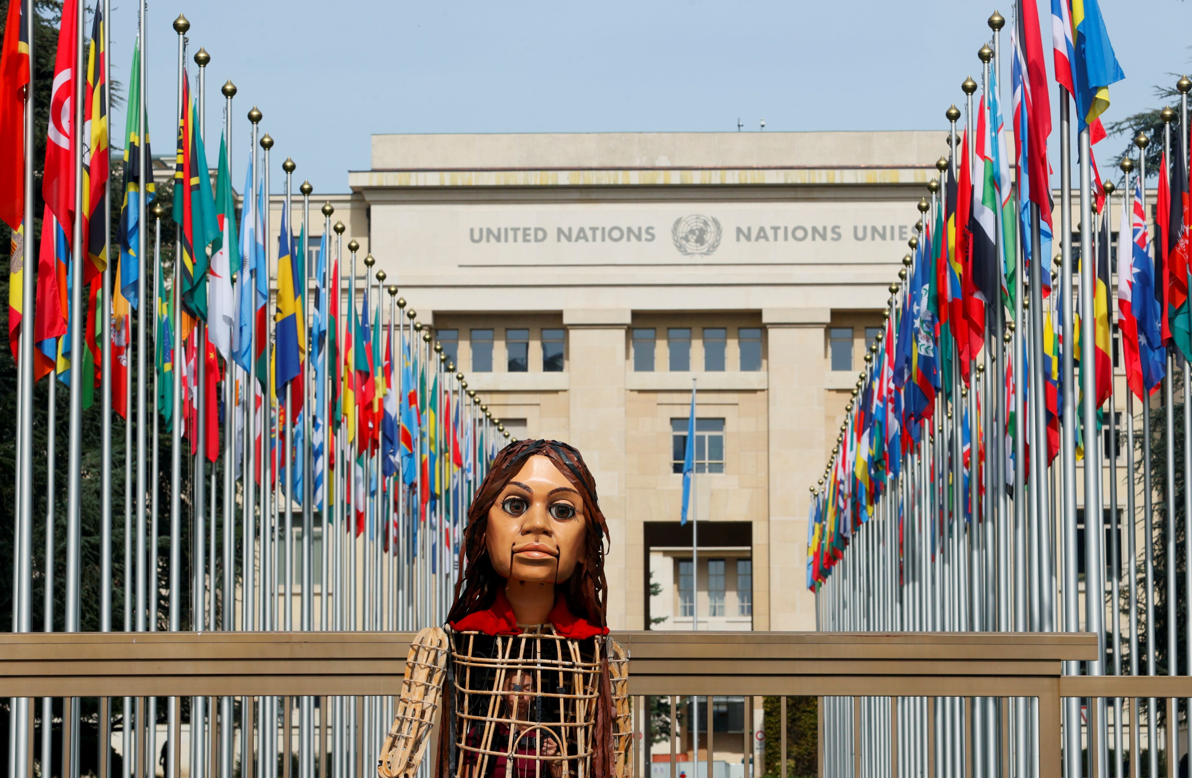 Little Amal at the UN in Geneva, September 28, 2021. Denis Balibouse / Reuters