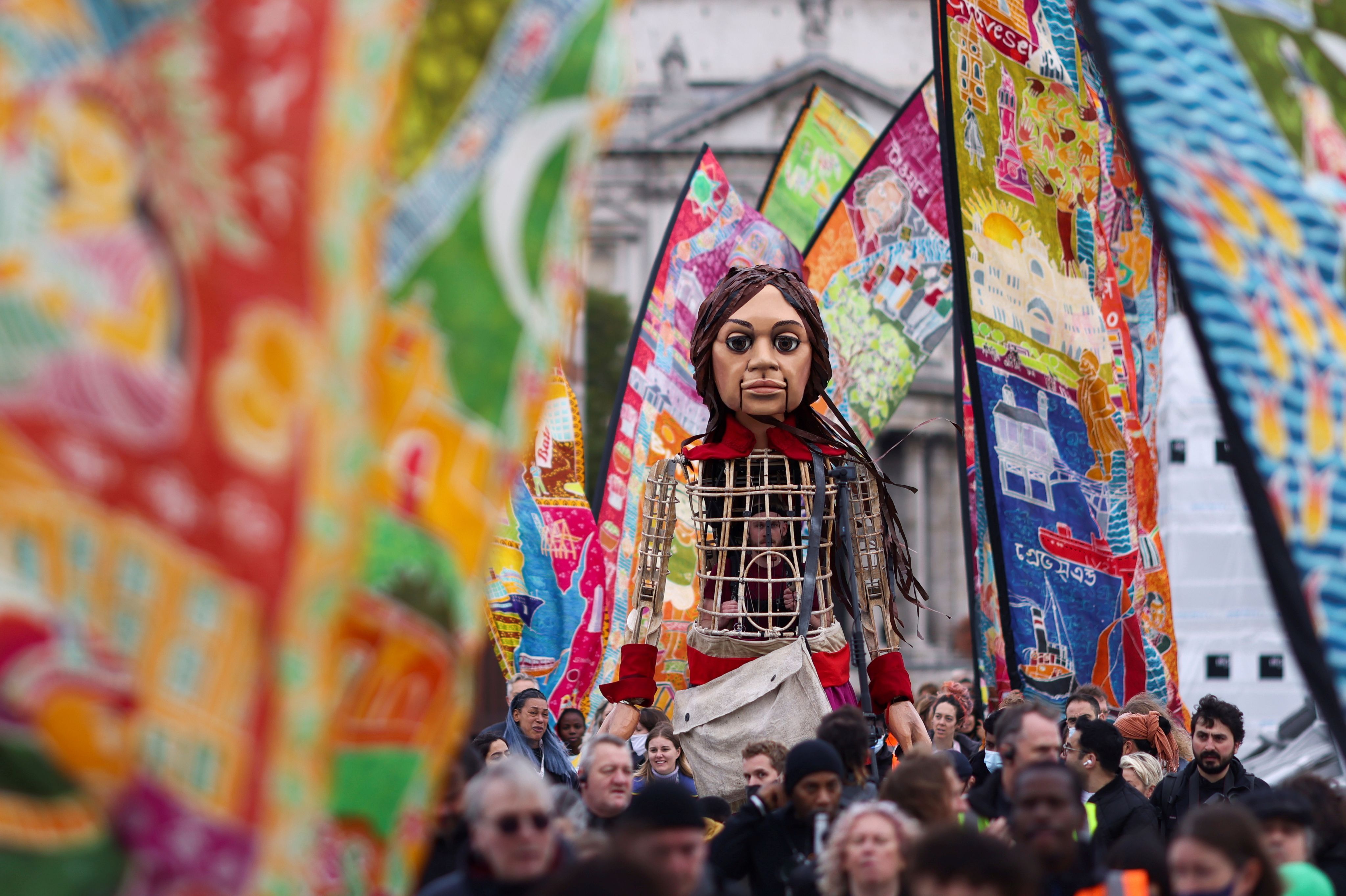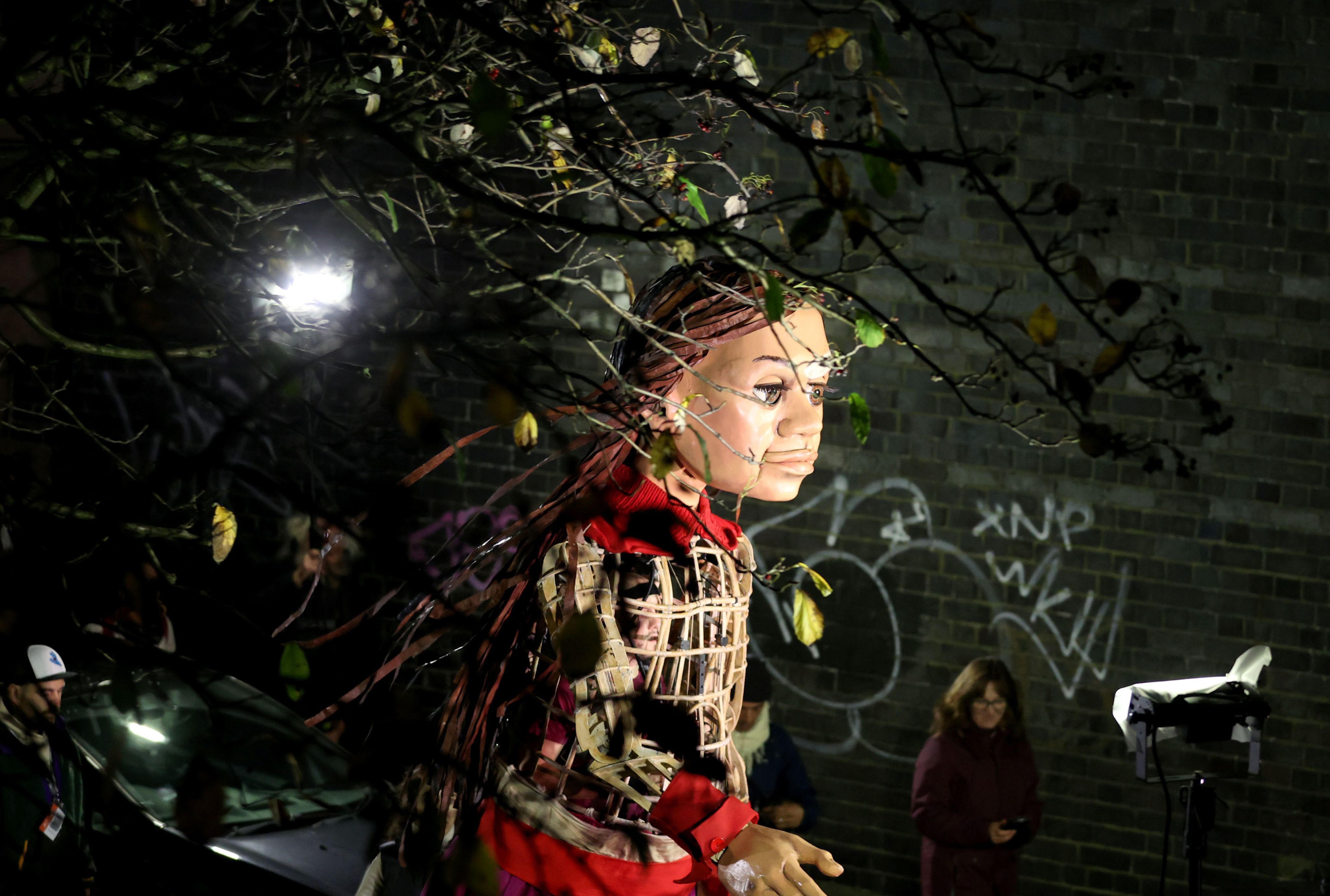 Little Amal in Manchester, England, on November 3, 2021. Molly Darlington / Reuters