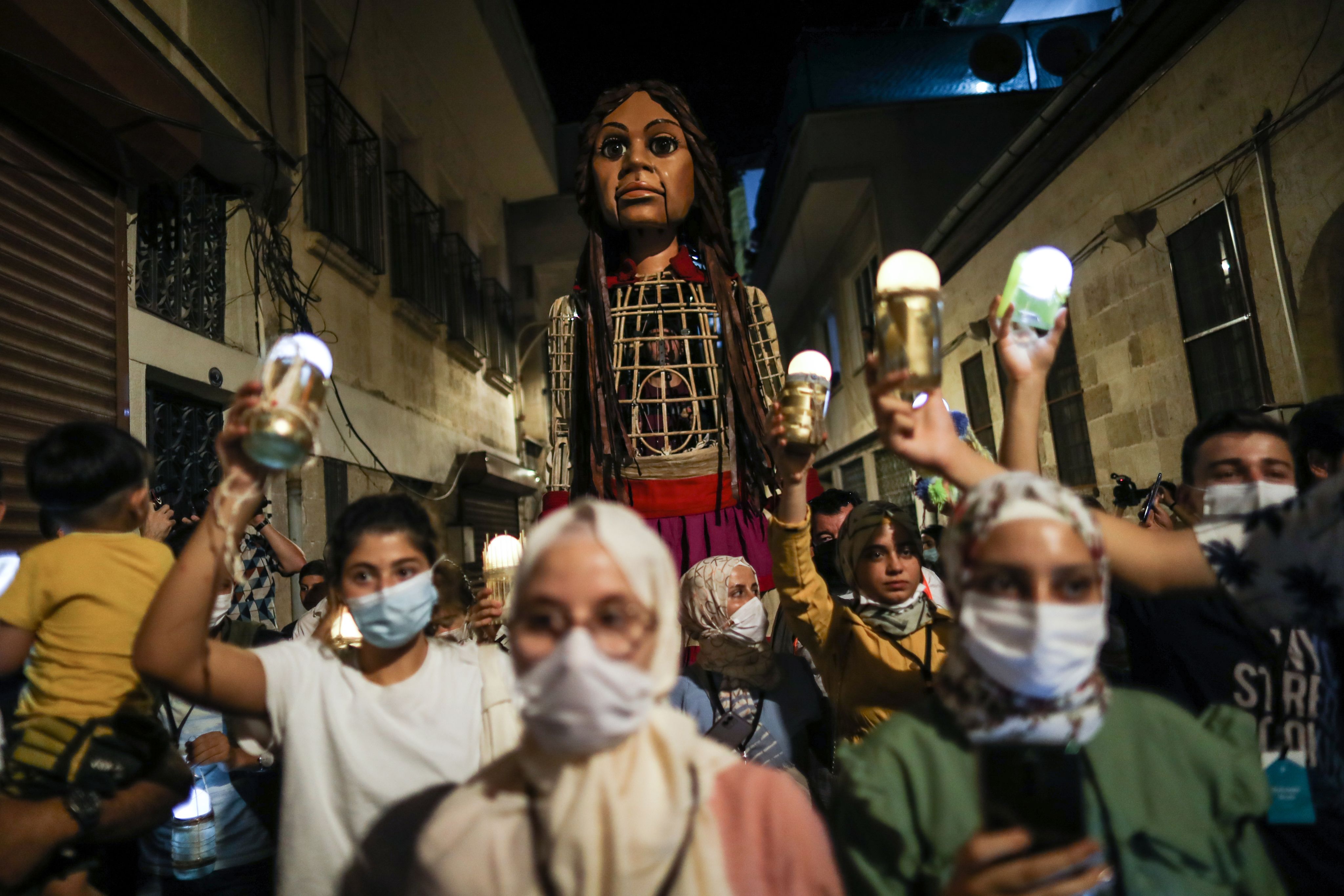 Little Amal began her four-month voyage across Europe in Gaziantep, along the Syrian-Turkish border, in July. Photo: André Liohn