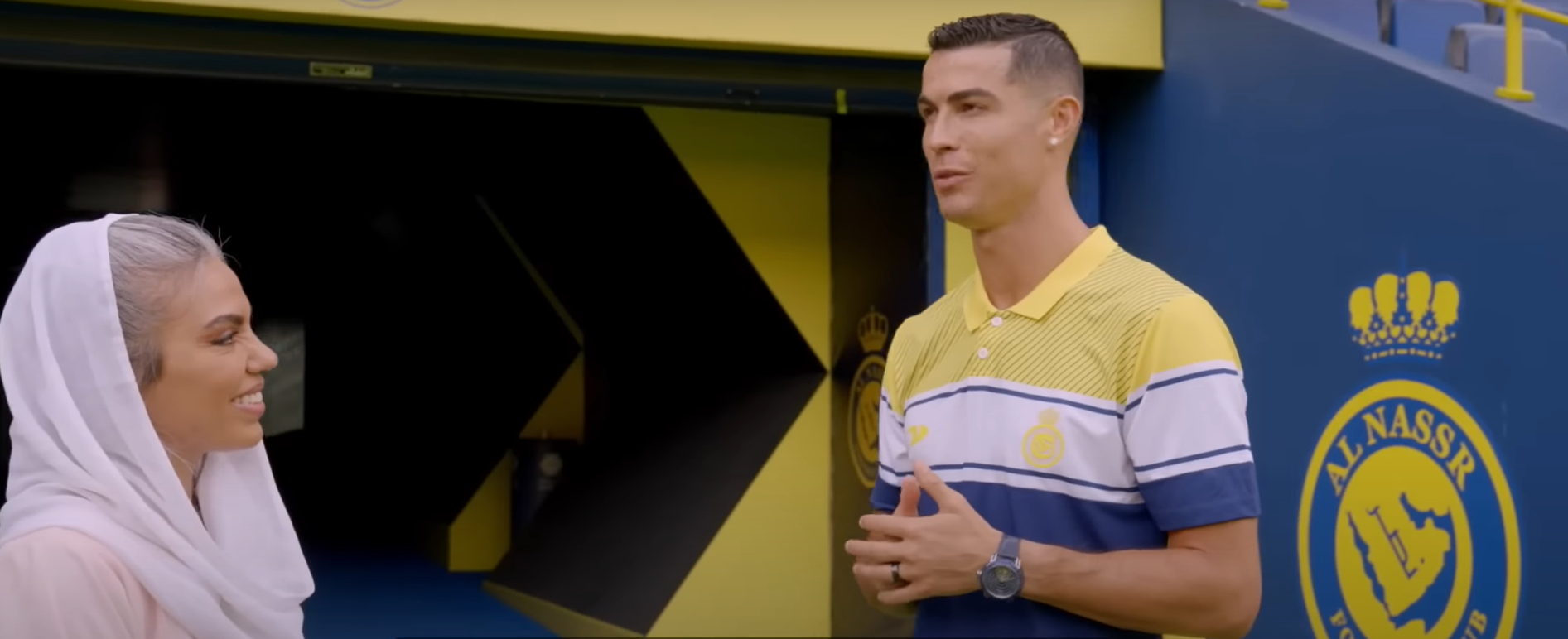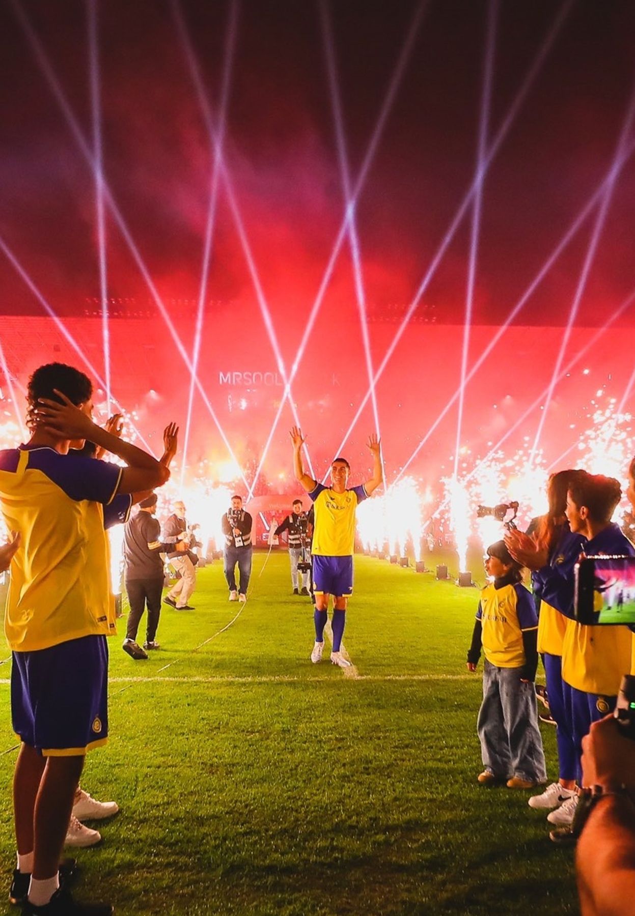 Media duties complete, Ronaldo was ushered off stage to the Nassr dressing room, where he changed into his new kit and posed for official pictures. He then prepared to walk out at Mrsool Park.
