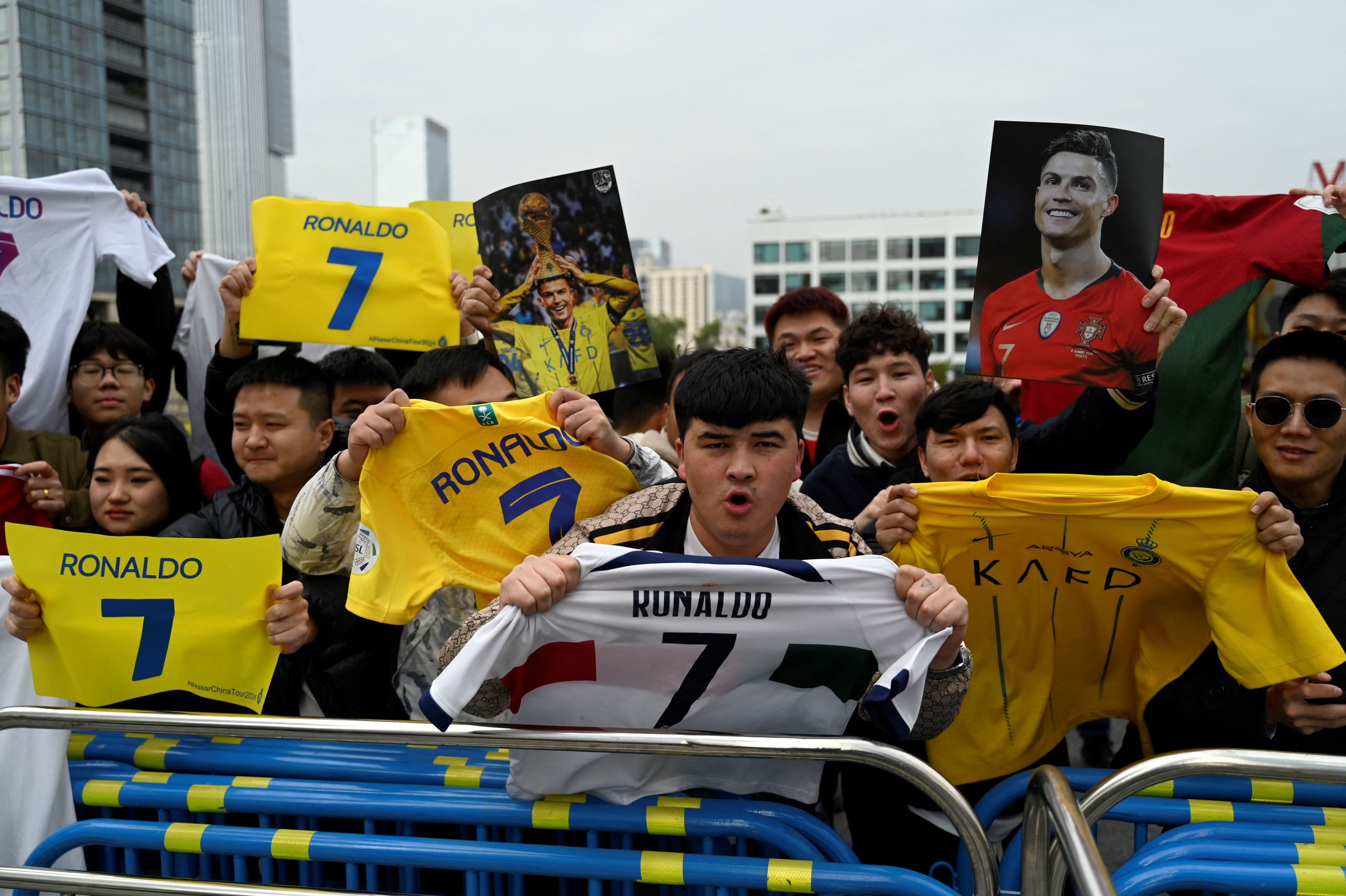 Fans of Ronaldo gather outside his hotel in Shenzhen, China, on January 24, 2024. AFP