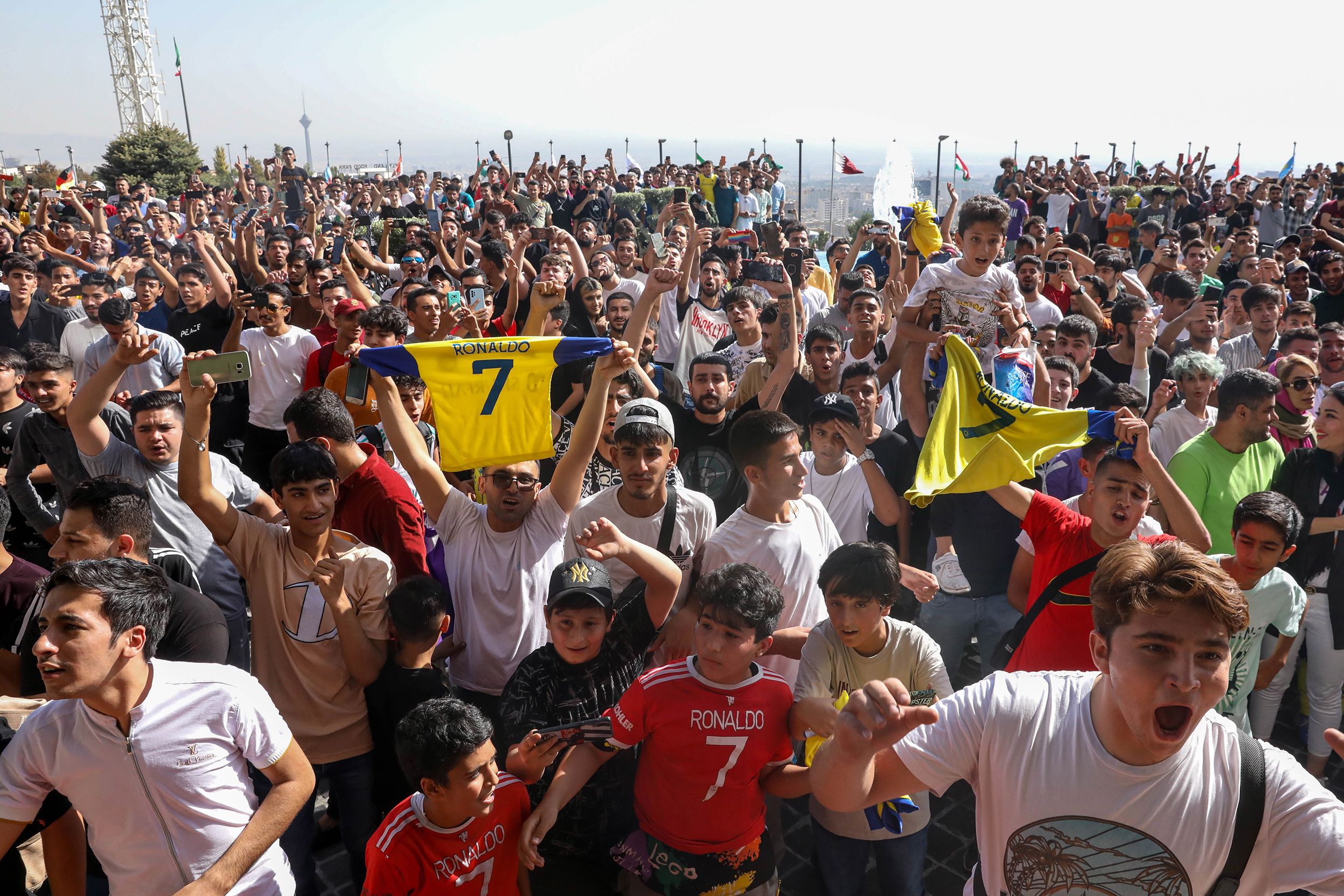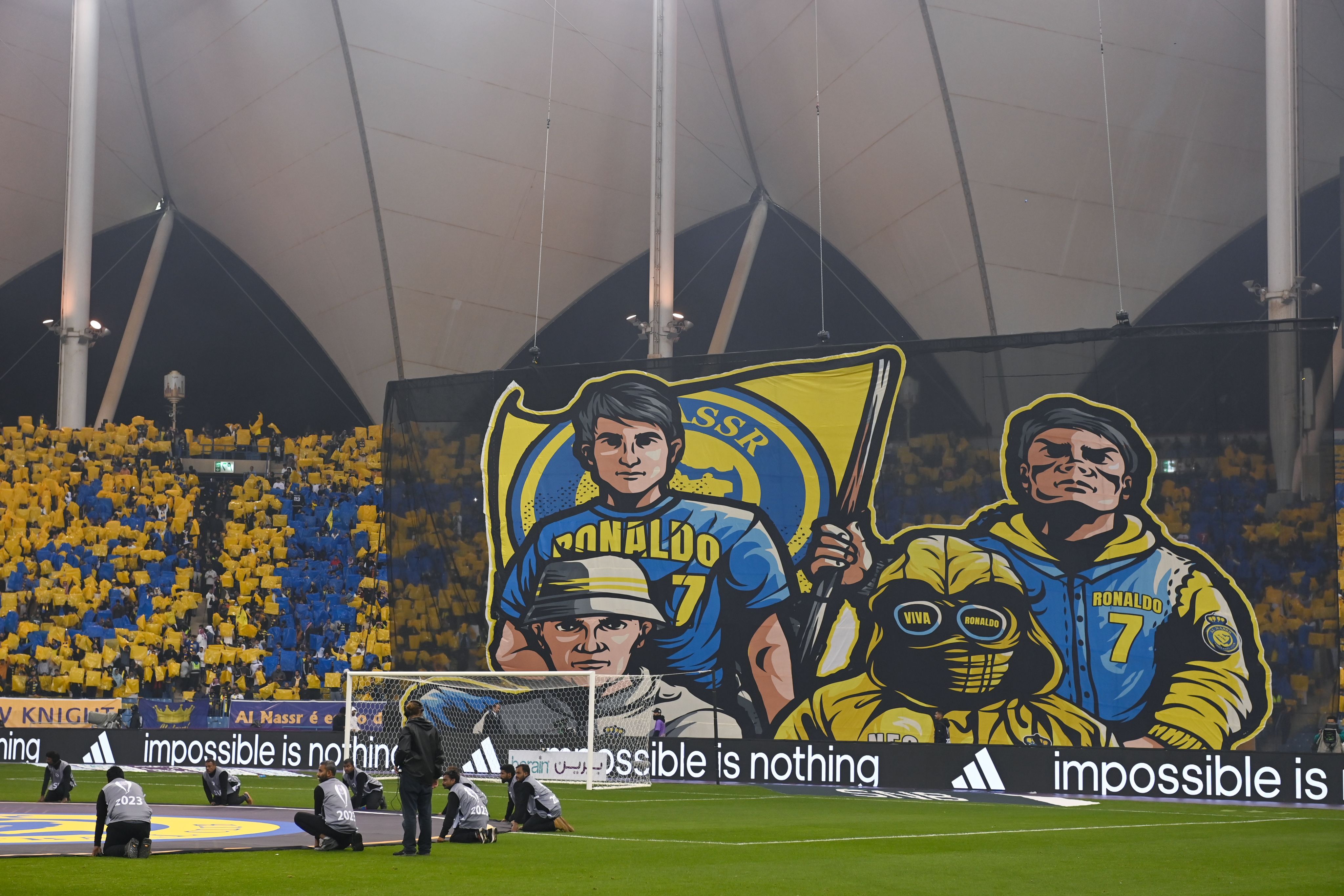 The same message was displayed on large screens on Mrsool Park, while traffic filled the roads to the stadium. Newfound entrepreneurs peppered the route, selling “Ronaldo 7” flags and scarves.