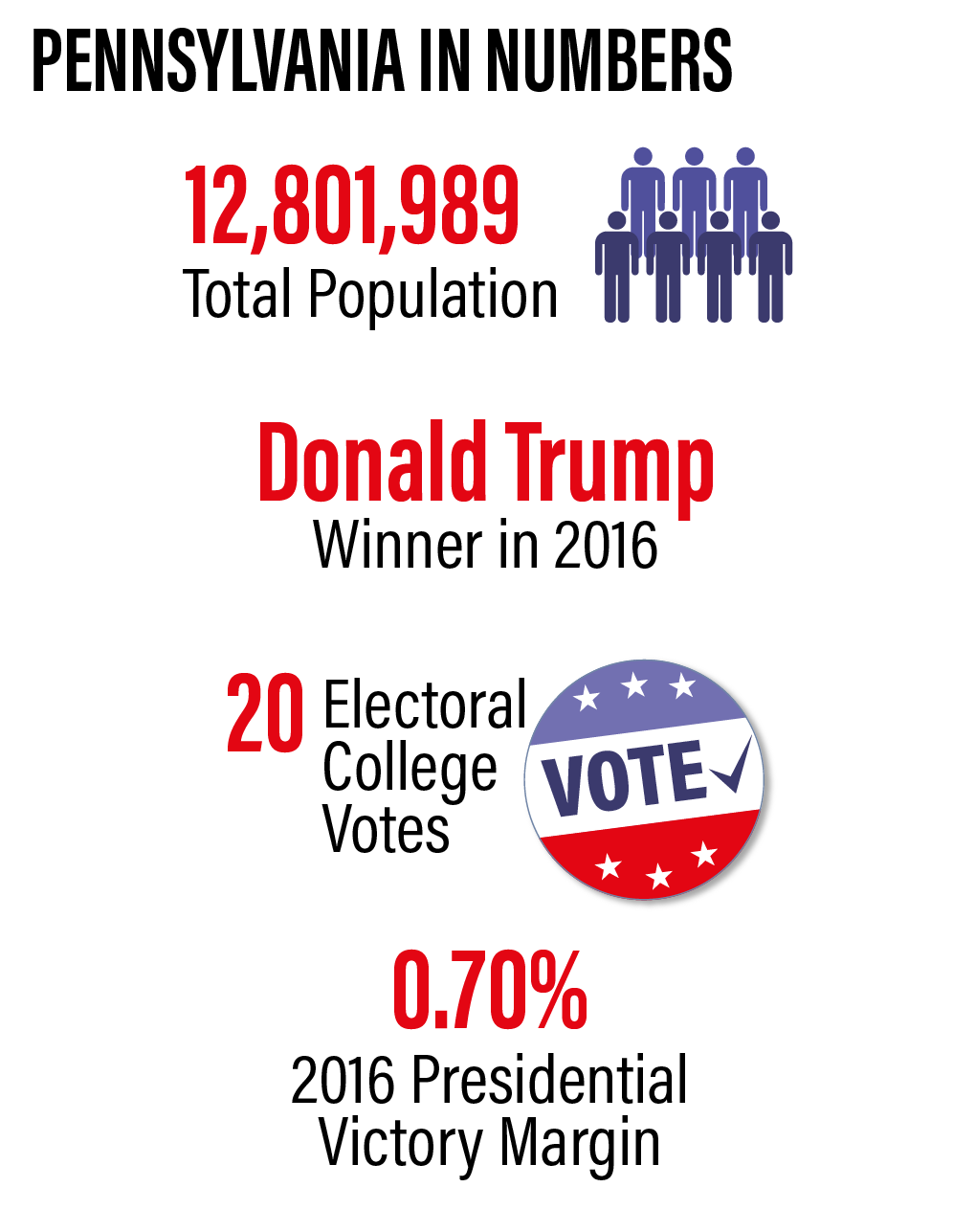 Pennsylvania is a critical swing state and is considered one of the 'big four' most likely to decide the Electoral College and consequently the winner of November’s presidential election.