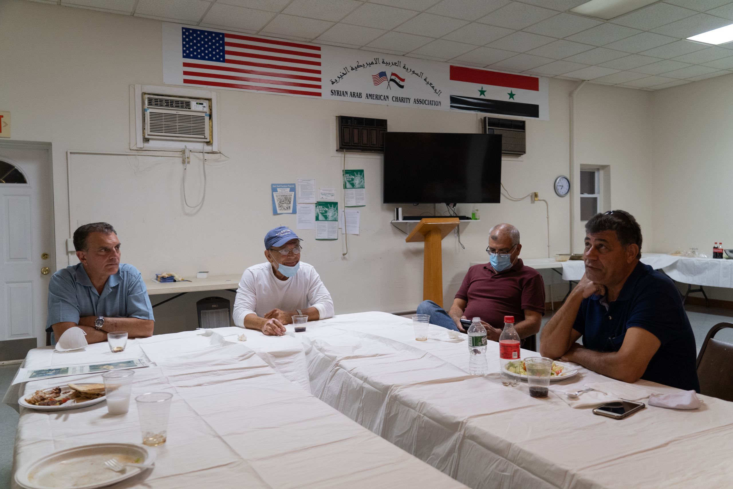 Members of the Syrian Arab American Charity Association discuss the US election while sharing a meal. Sophie Tremblay / The National