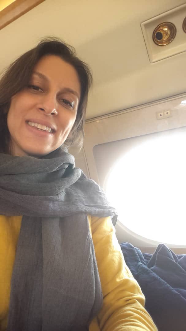 Nazanin Zaghari-Ratcliffe pictured on a plane leaving Iran after six years. Photo: Tulip Siddiq / Twitter