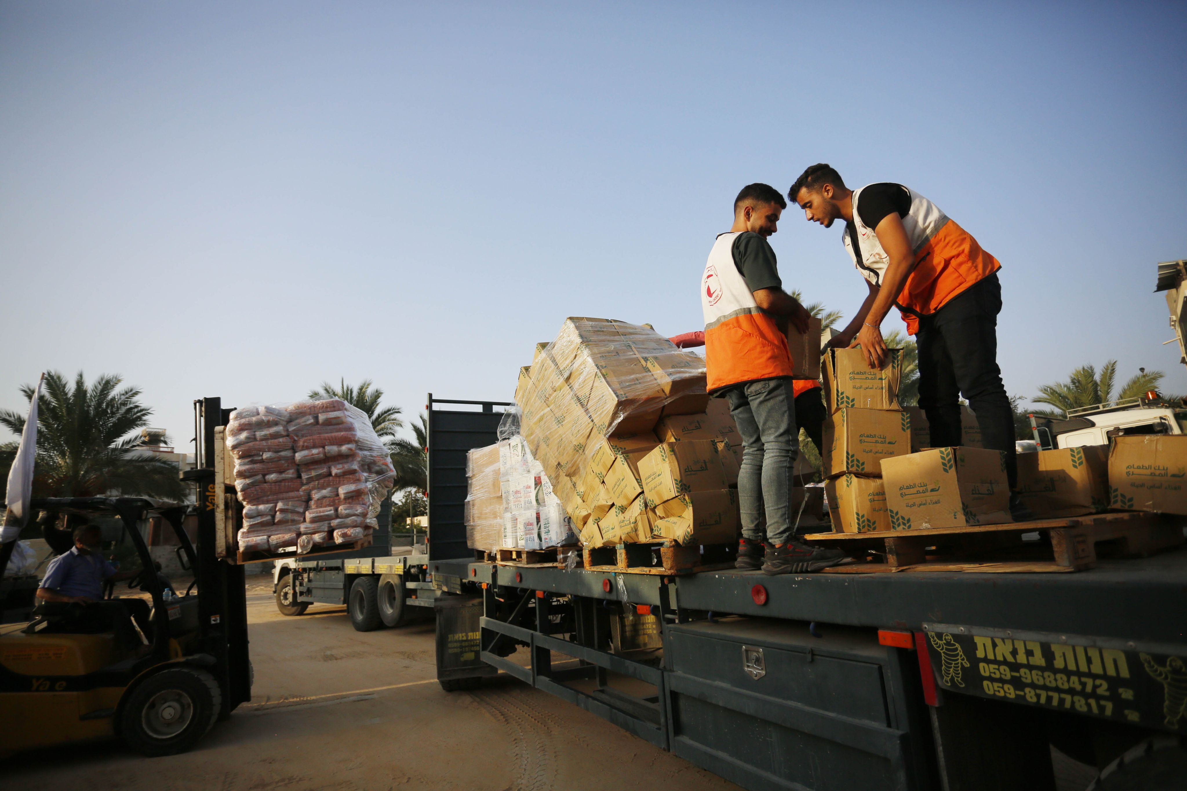Volunteers ograinse food aid in Khan Younis. Photo: Anadolu