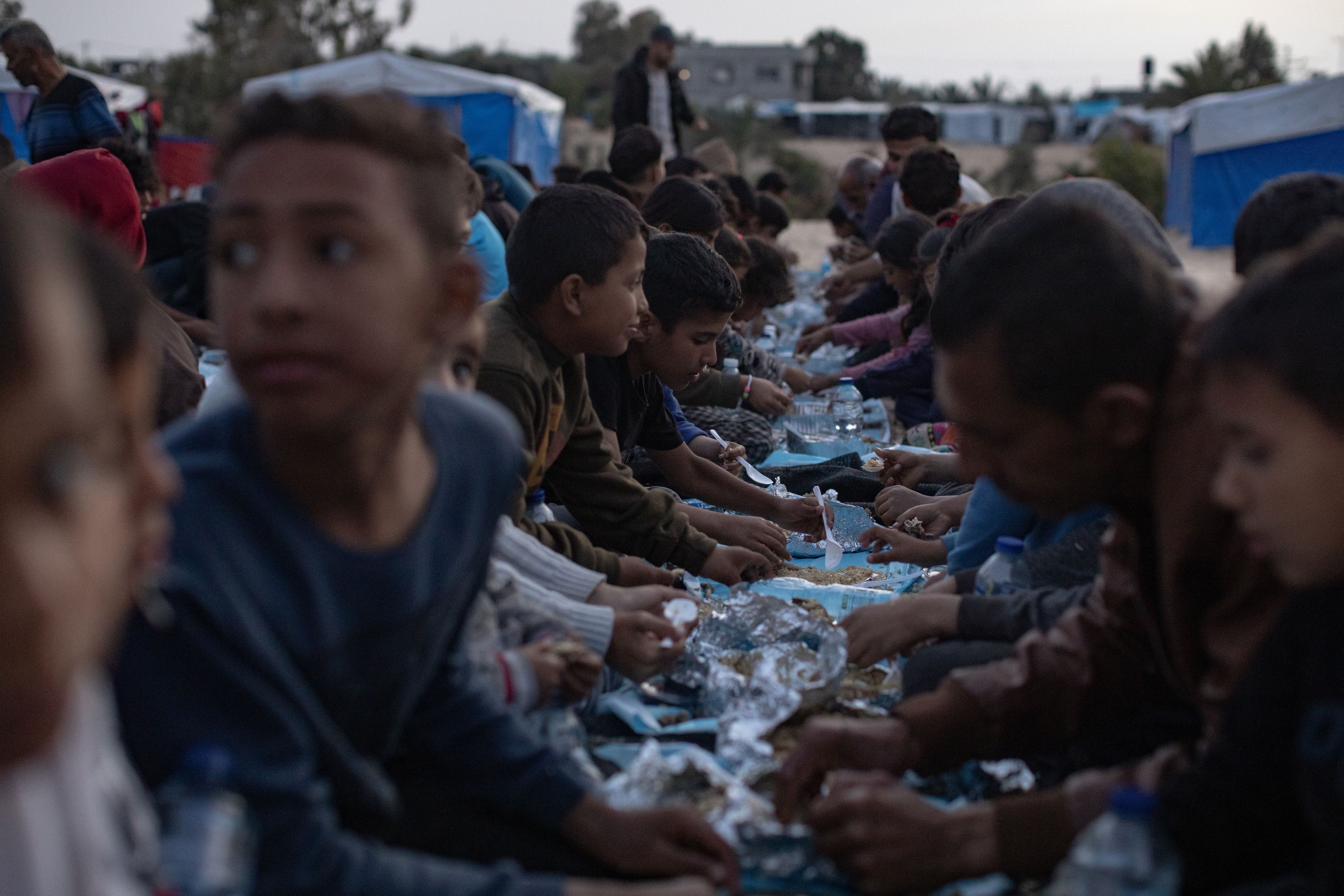Displaced Palestinians in Gaza break their fasts. EPA