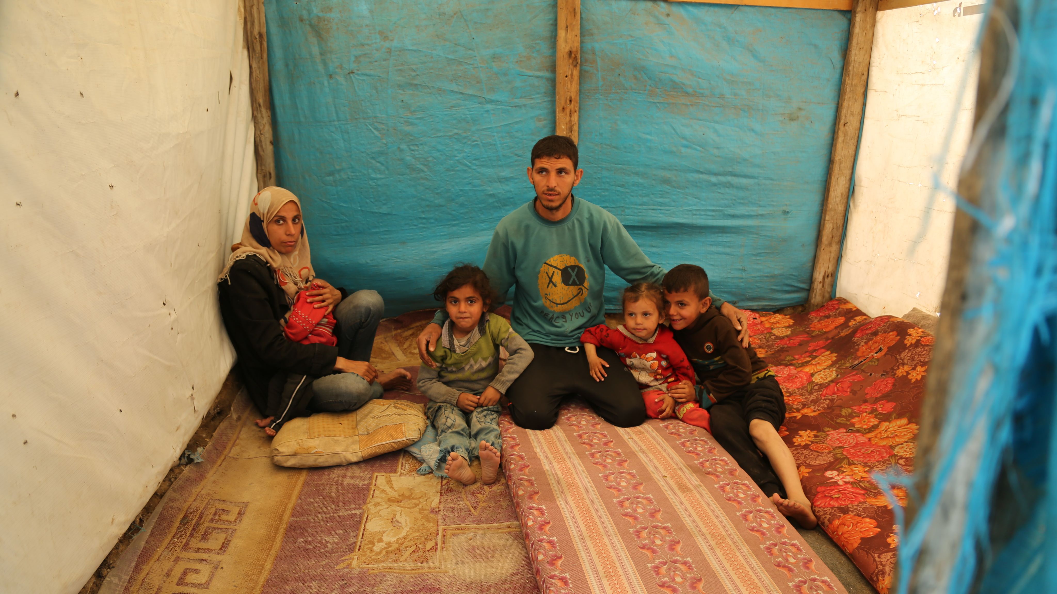 Their tent is crowded and they have only three blankets to share among 14 people.
