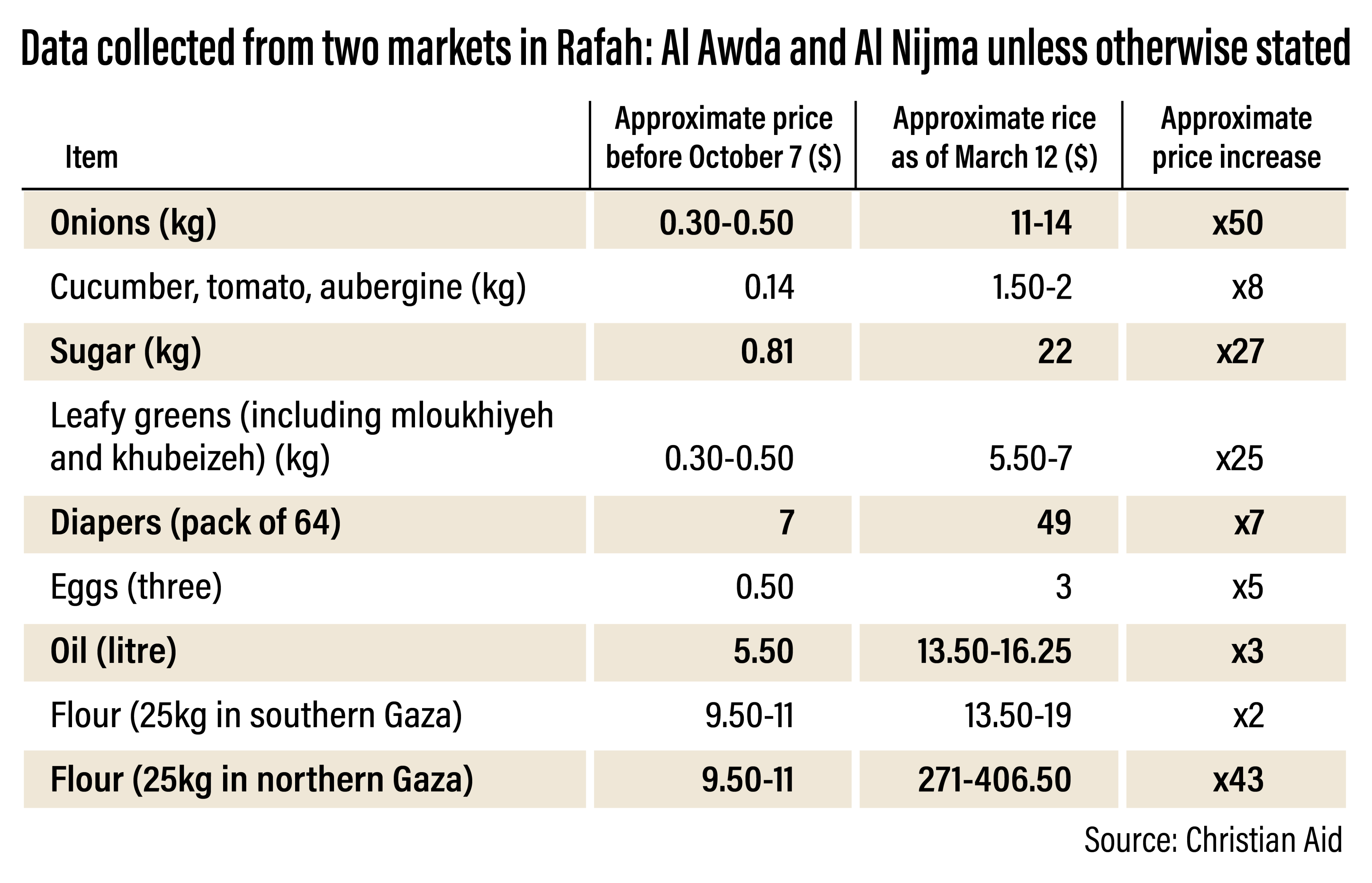 She says 1kg of mloukhiyeh previously cost 5 shekels but can now cost up to 30 shekels. A box of aubergines used to cost up to 8 shekels, while that money fetches just three or four aubergines today.