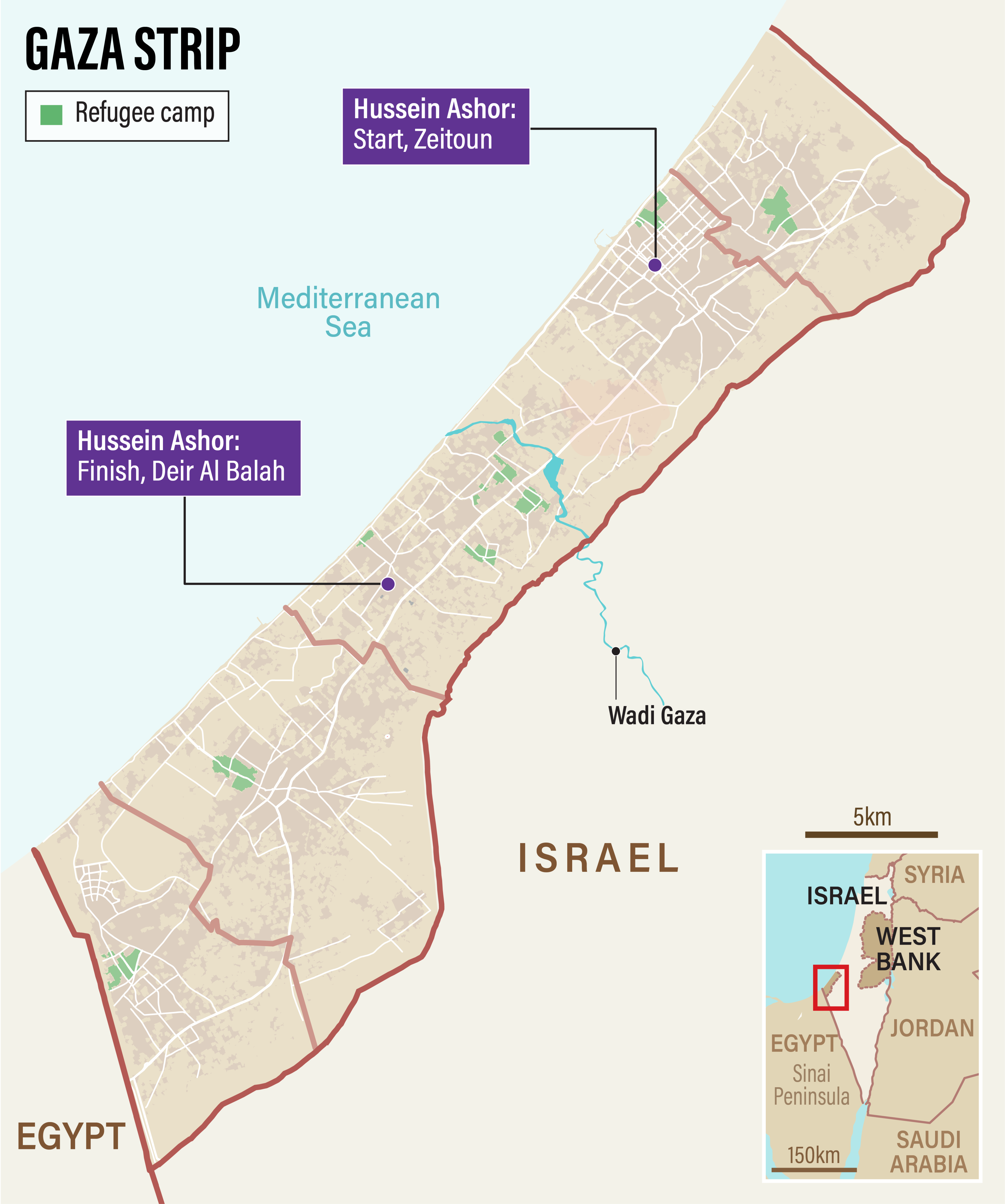 Today, Hussein, his wife Nesma, and their four children - aged between 5 months to 10 years - live in a tent in Ard Shuraab, Deir Al Balah.