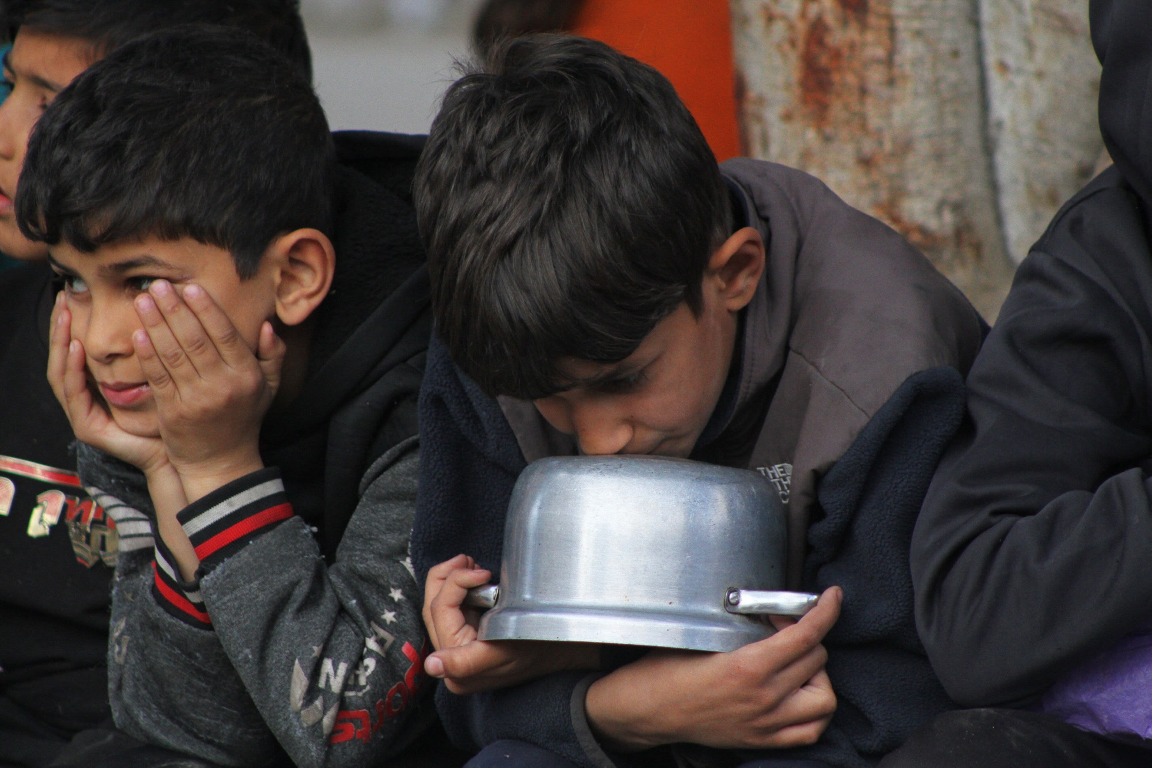 "We queue at the tikieh and fight with other people in the sun. Before, we used to play but instead of playing now we queue for food or get water from the hospital. We're really tired."