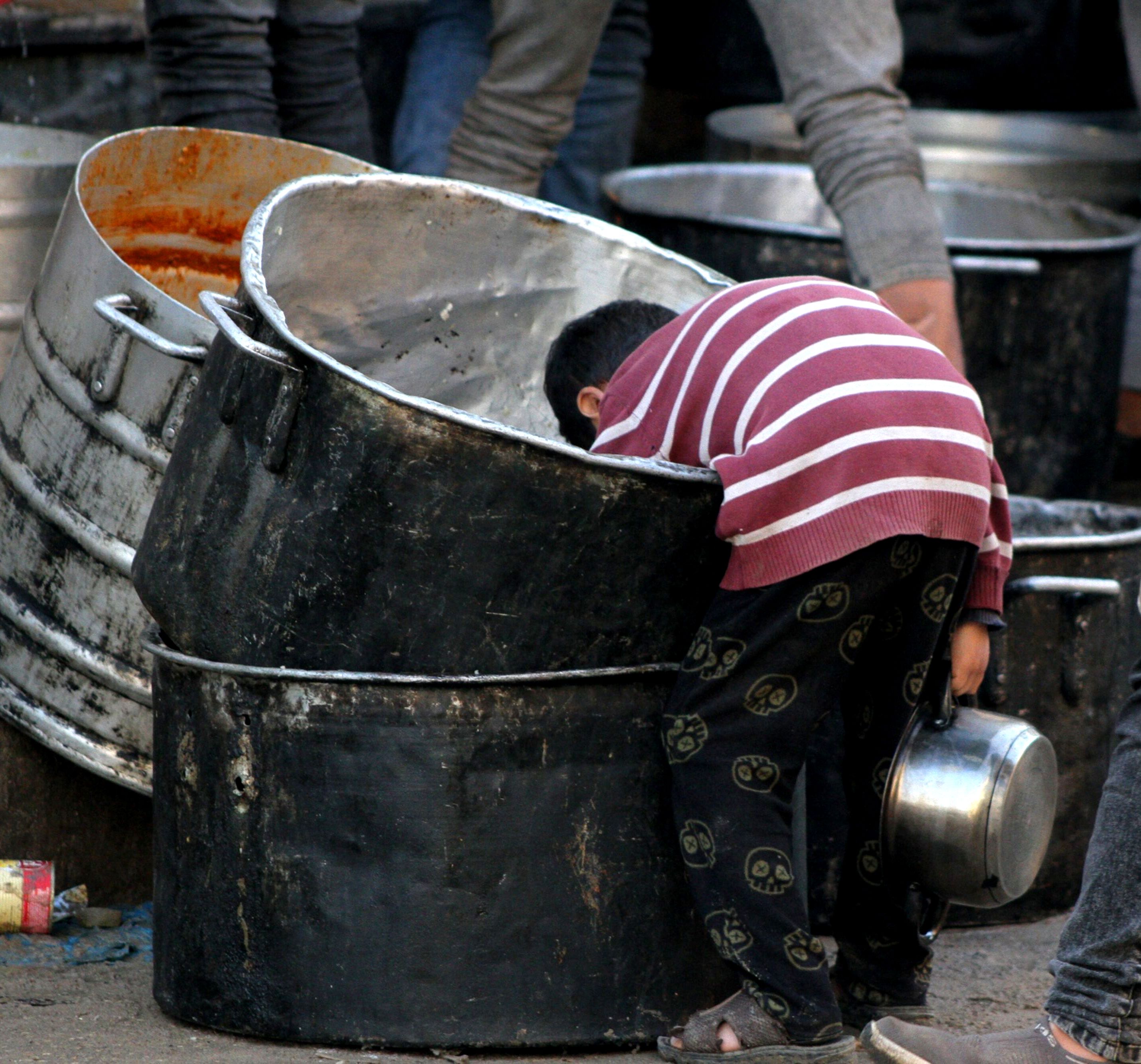 A child searches for leftover food in Deir Al Balah. Bloomberg