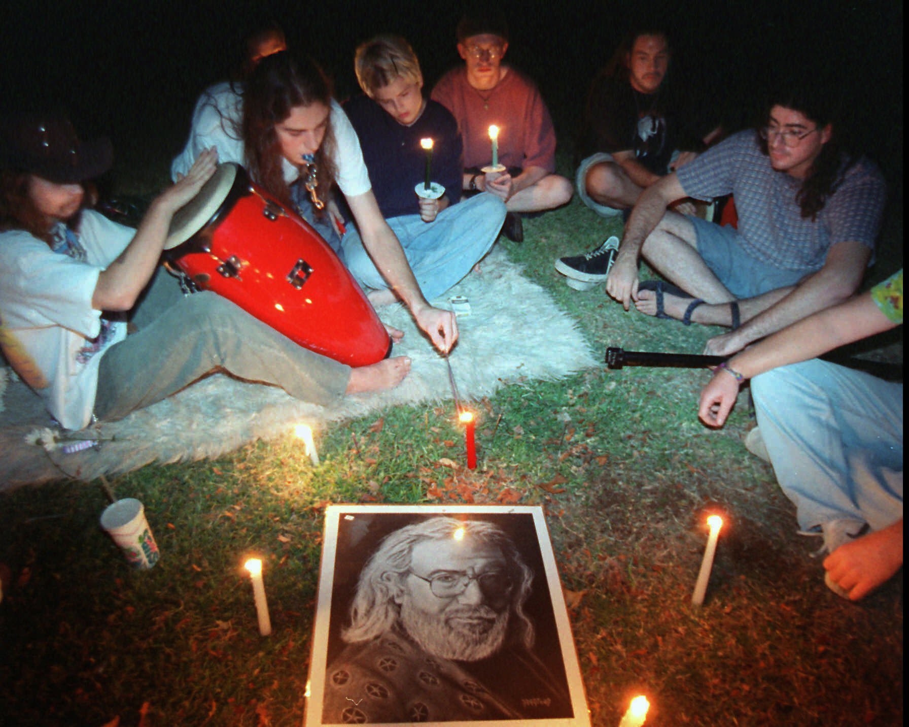 Grateful Dead fans gather for a candlelight vigil to mark the death of the band's lead guitarist and vocalist Jerry Garcia in 1995. AP