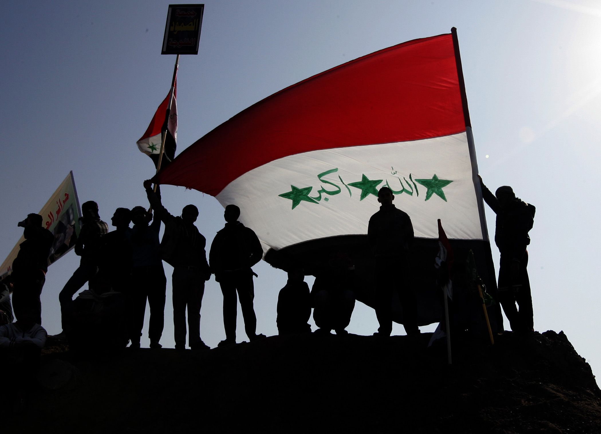 Iraqi Sunni Muslims wave a giant national flag during an anti-government demonstration in Fallujah on January 4, 2013. EPA
