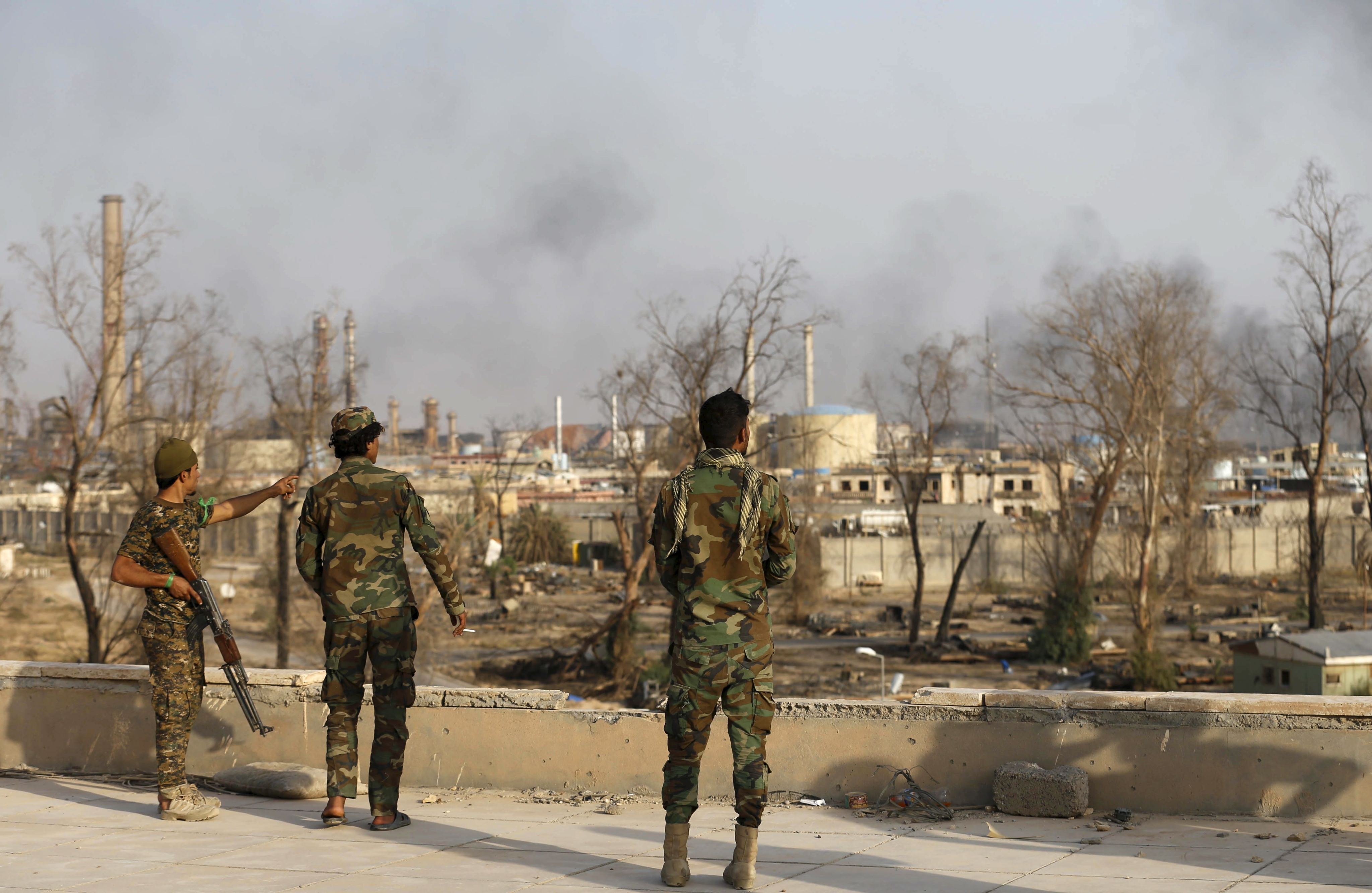 Iraqi security forces stand guard in a Baiji oil refinery, north of Baghdad, on October 16, 2015 after recapturing it from ISIS with the help of Shiite militia fighters. Reuters