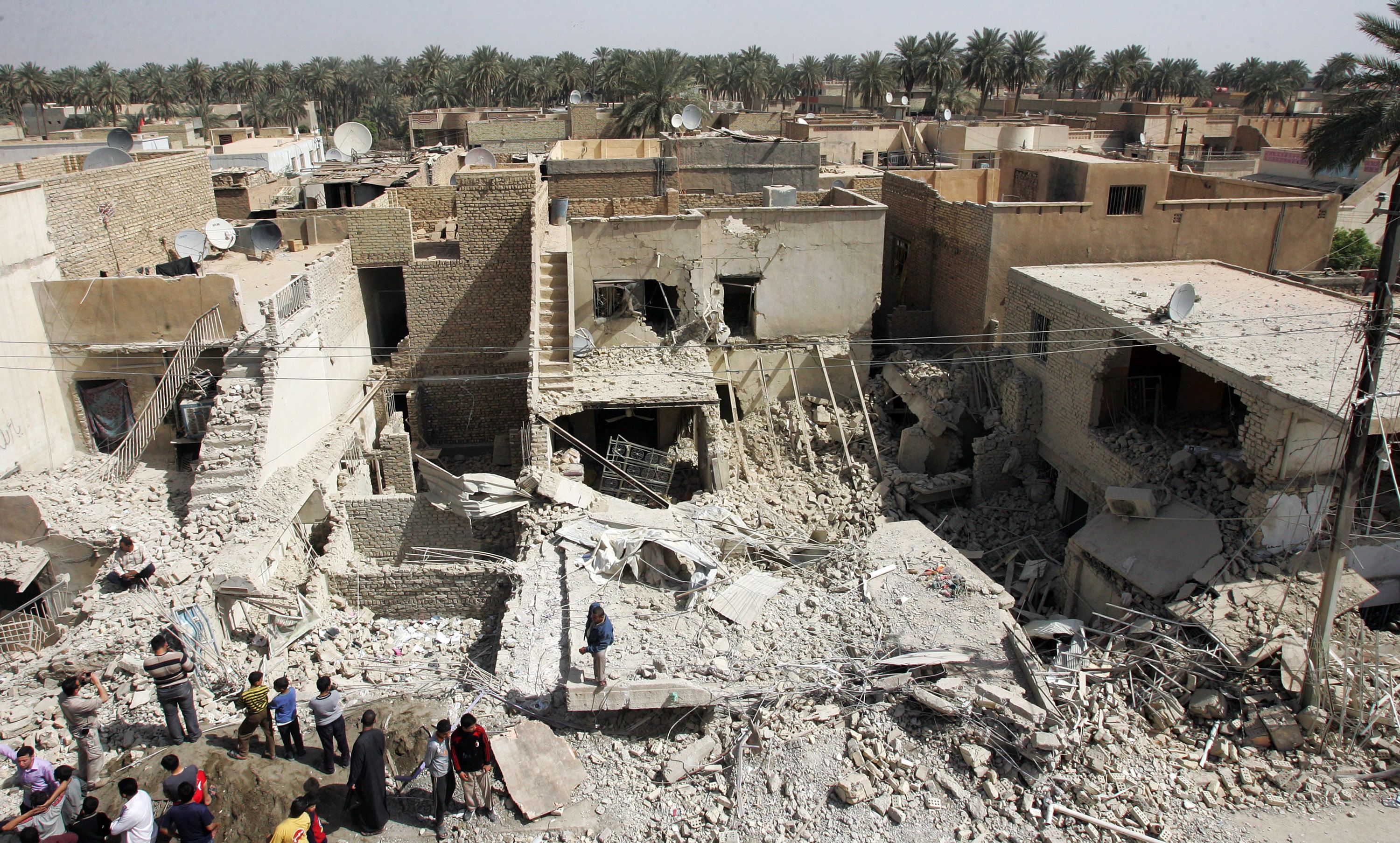 Buildings are destroyed by a barrage of mortar and bombs in north Baghdad on March 7, 2010. Getty