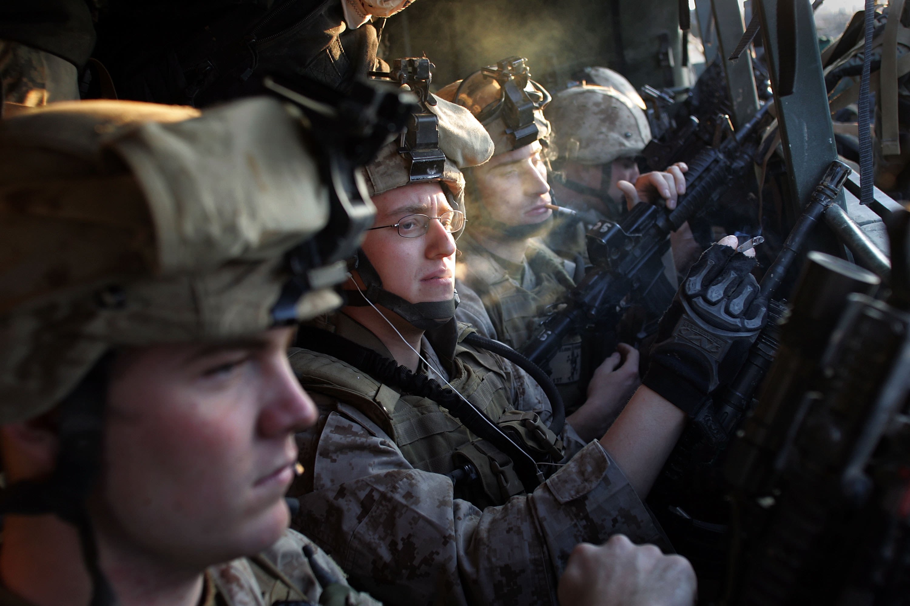 US Marines prepare to leave for a military operation at Camp Ramadi in the Anbar province of Iraq on January 14, 2007. Getty