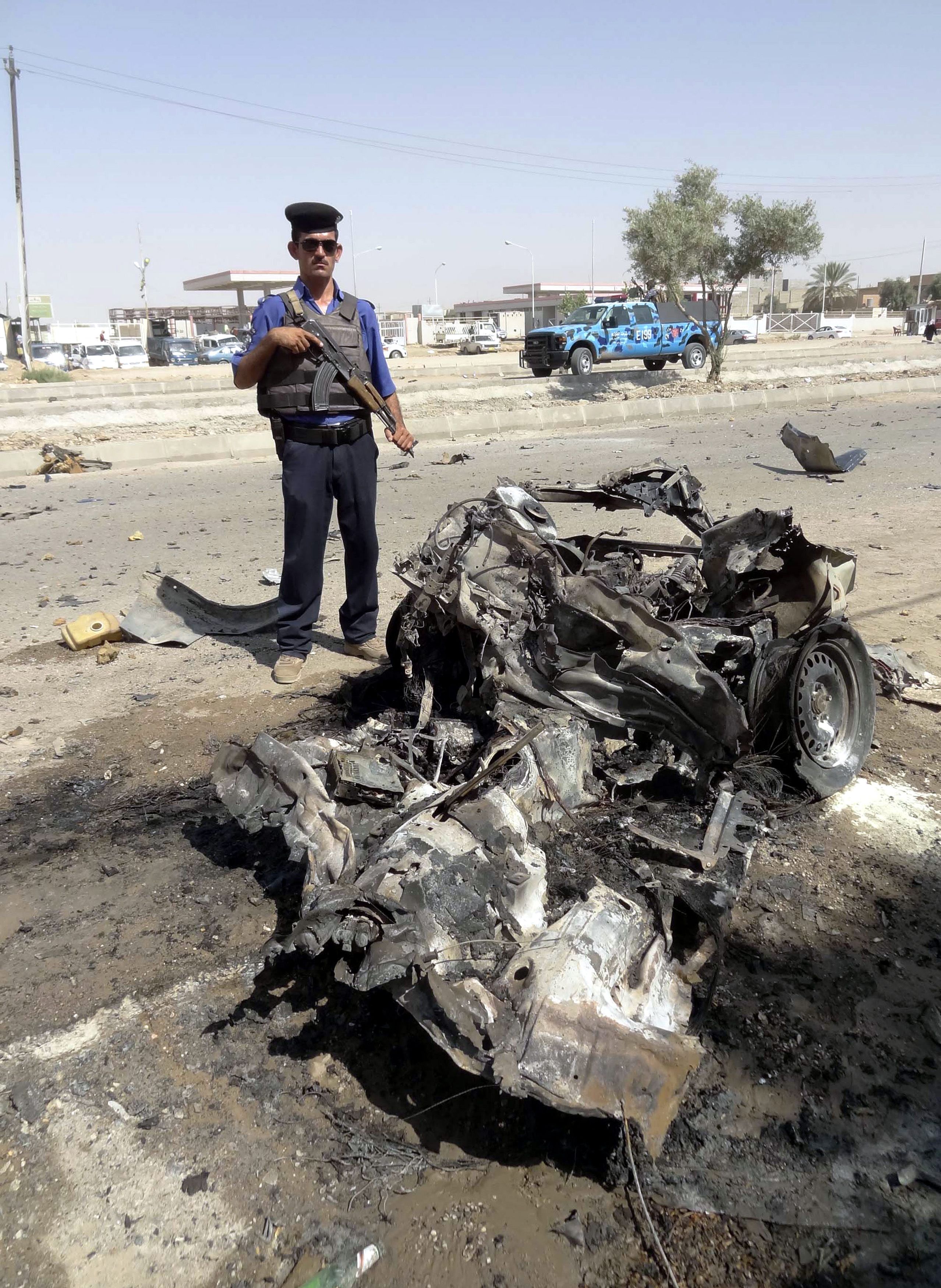 An Iraqi policeman inspects the site of a car bomb attack in Kirkuk, northern Iraq, on July 23, 2012. EPA