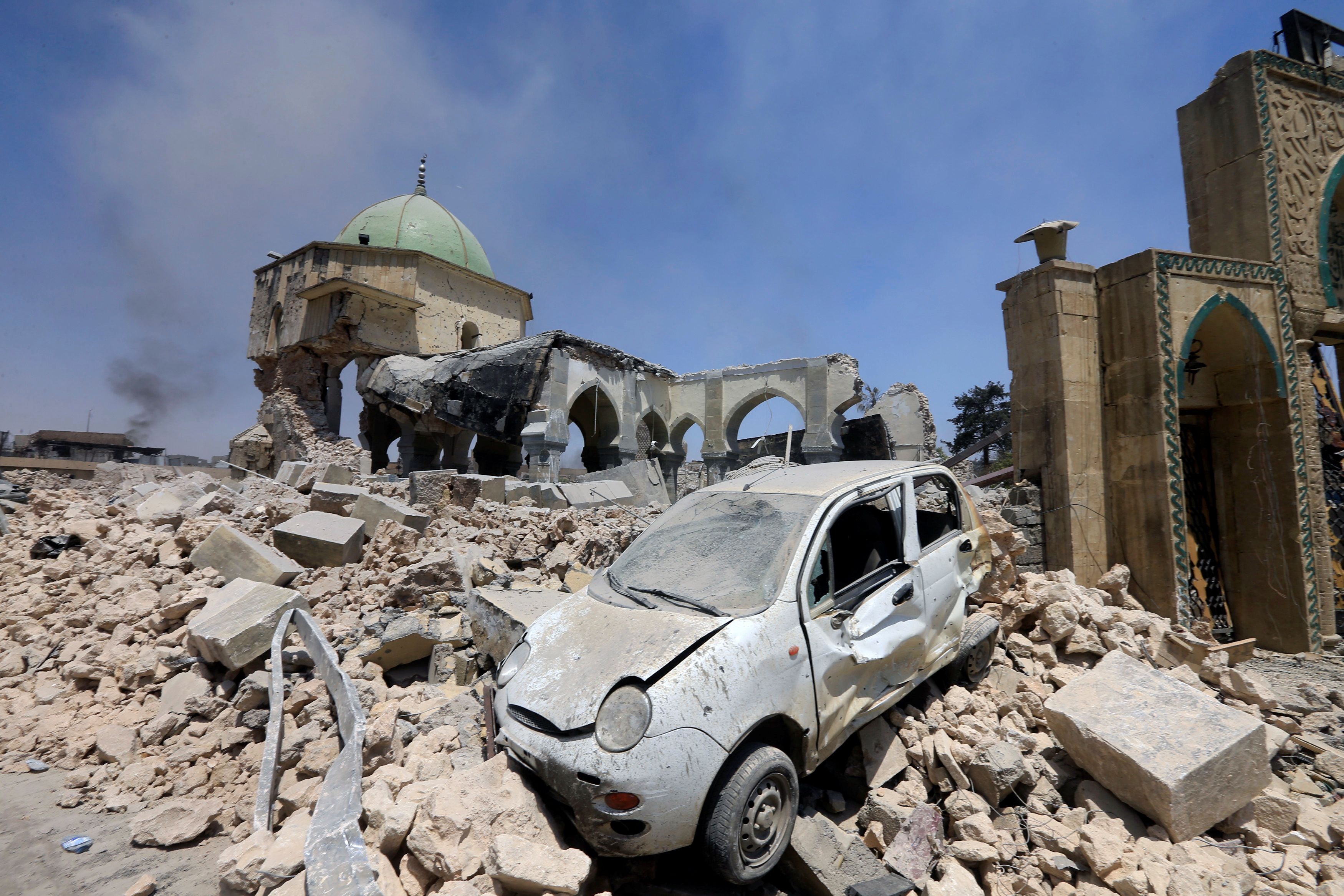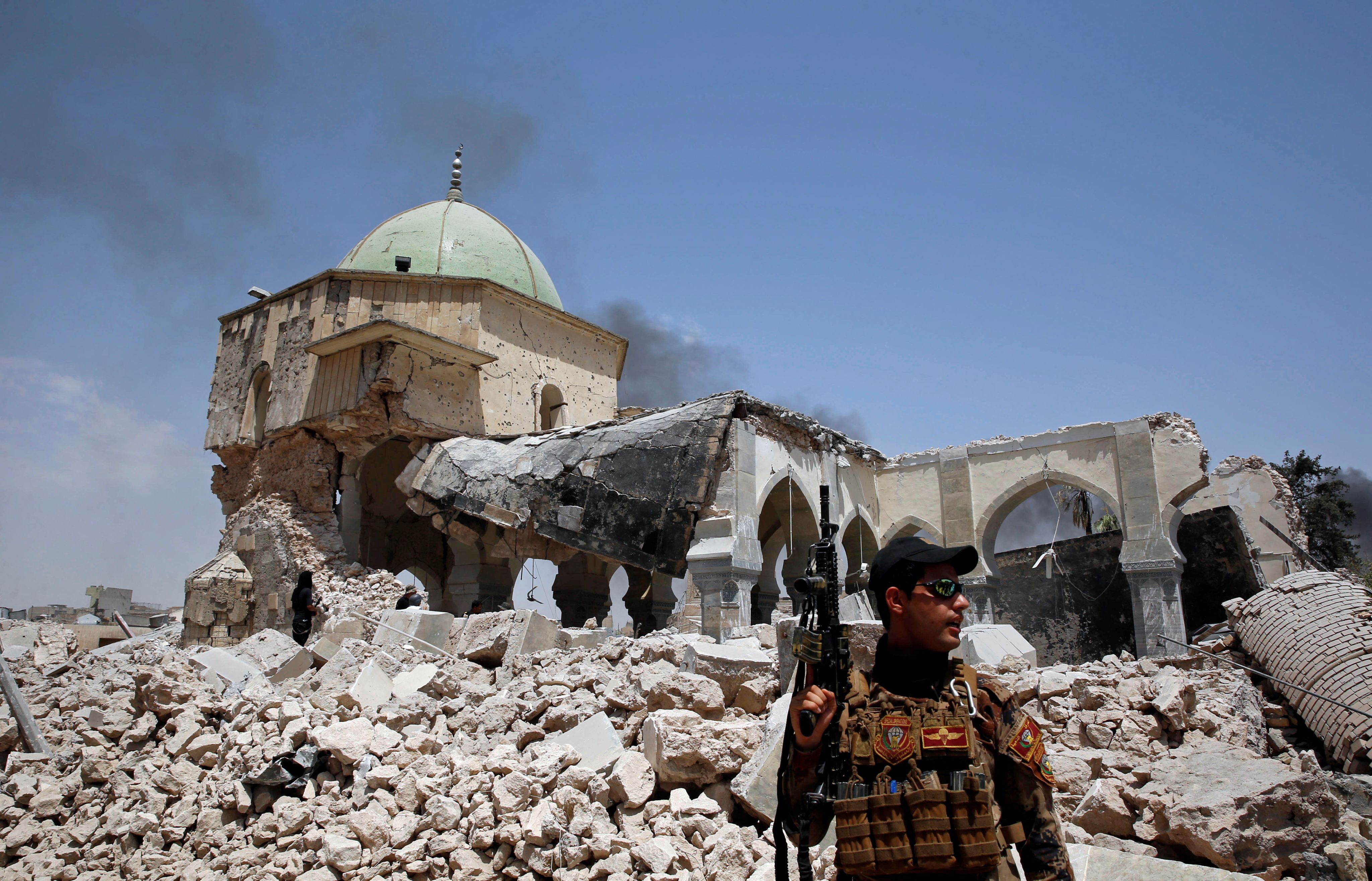 Al Nuri Mosque is destroyed by ISIS militants in the old city of Mosul, on June 30, 2017. Reuters
