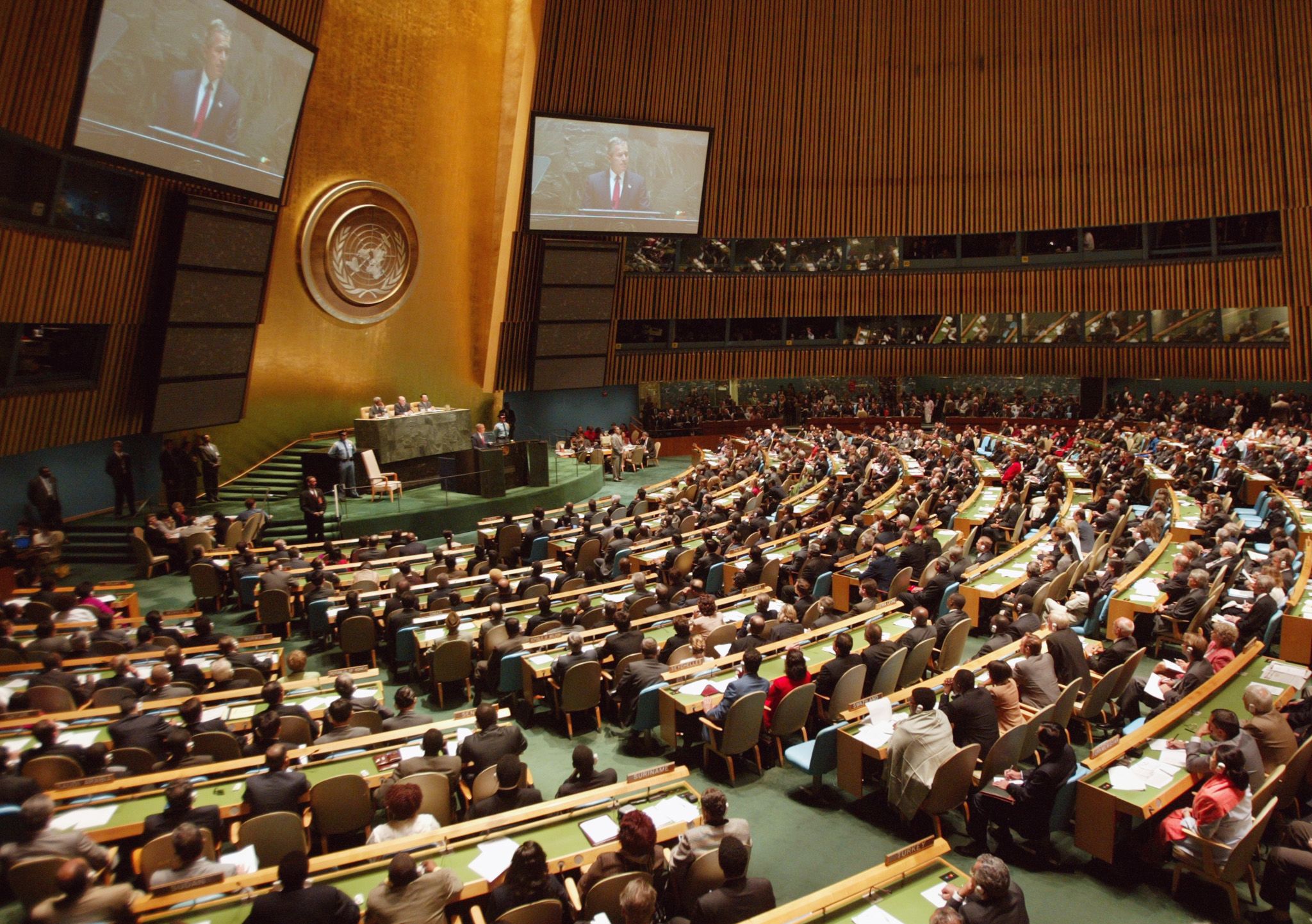 US President George W Bush makes his case against Iraq at the UN General Assembly on September 12, 2002 in New York. Reuters