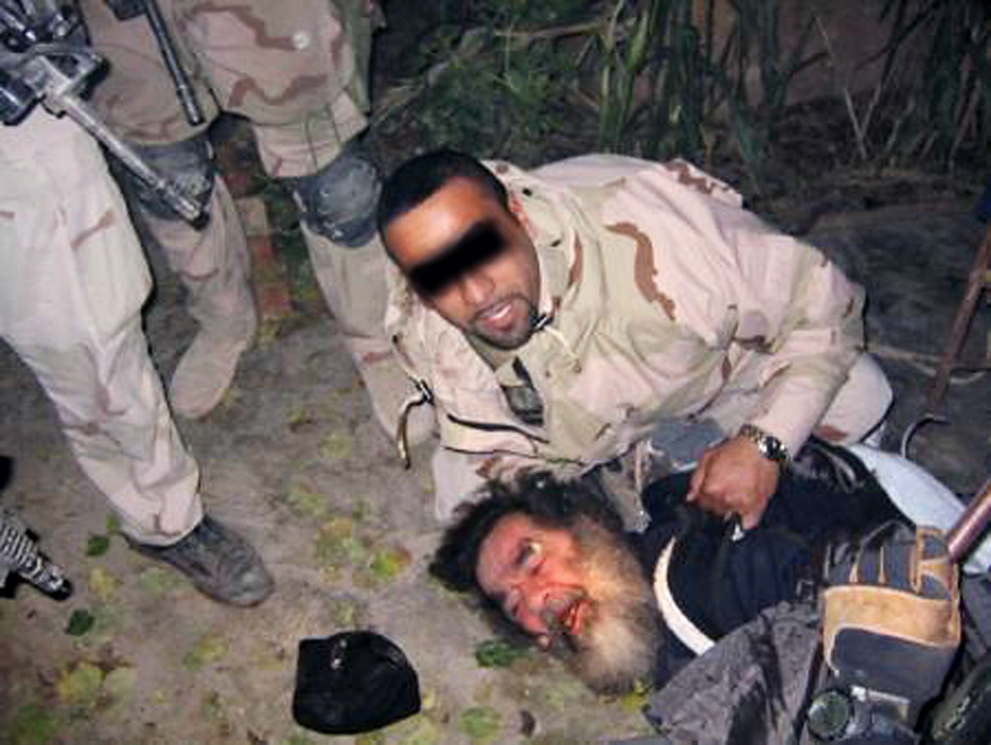 Ousted Iraqi leader Saddam Hussein is dragged out of hiding from an underground hole near his hometown of Awja on December 30, 2006. AFP