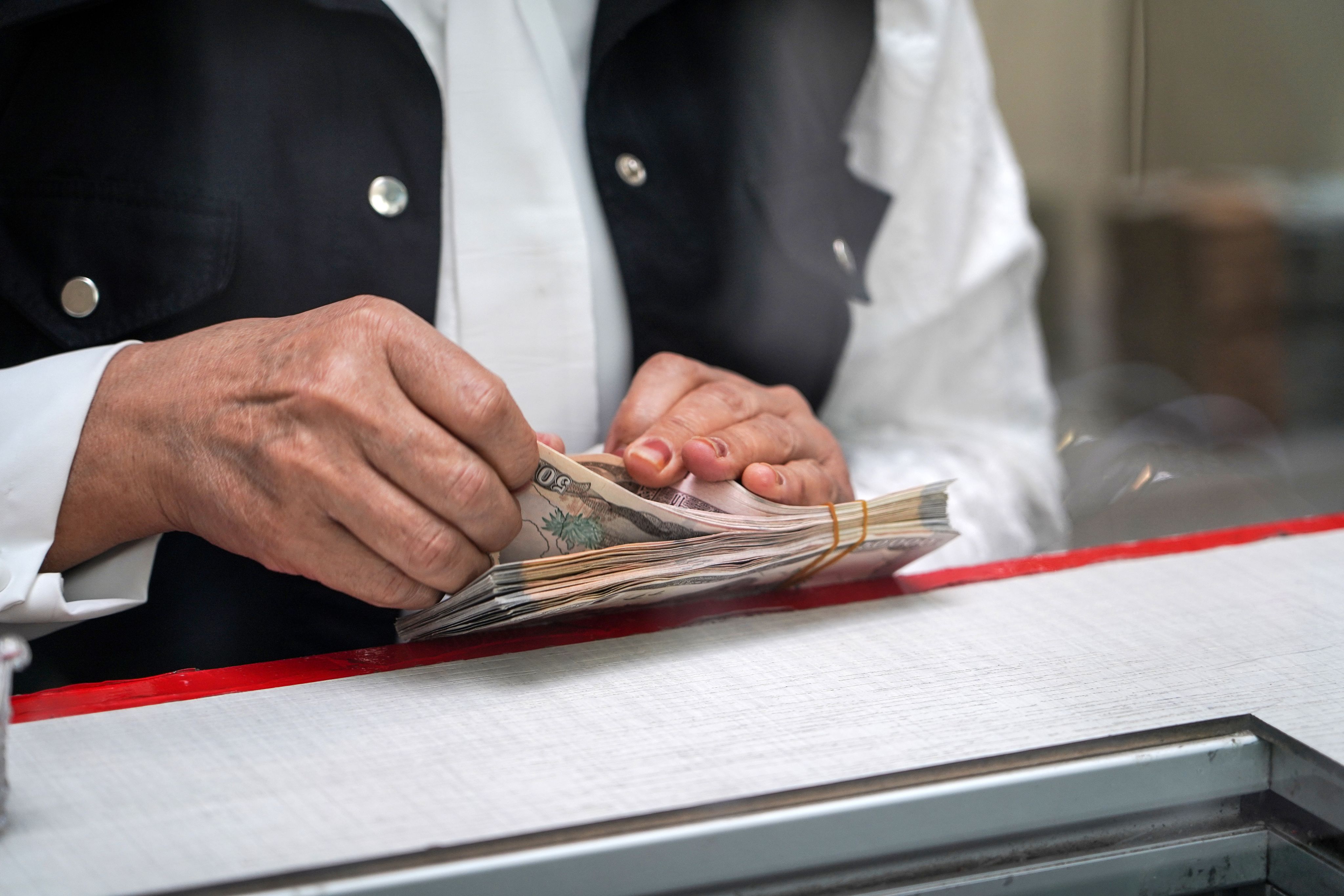 A teller at the Central Bank of Iraq in Baghdad counts out cash for a customer. Aymen Al Ameri / The National