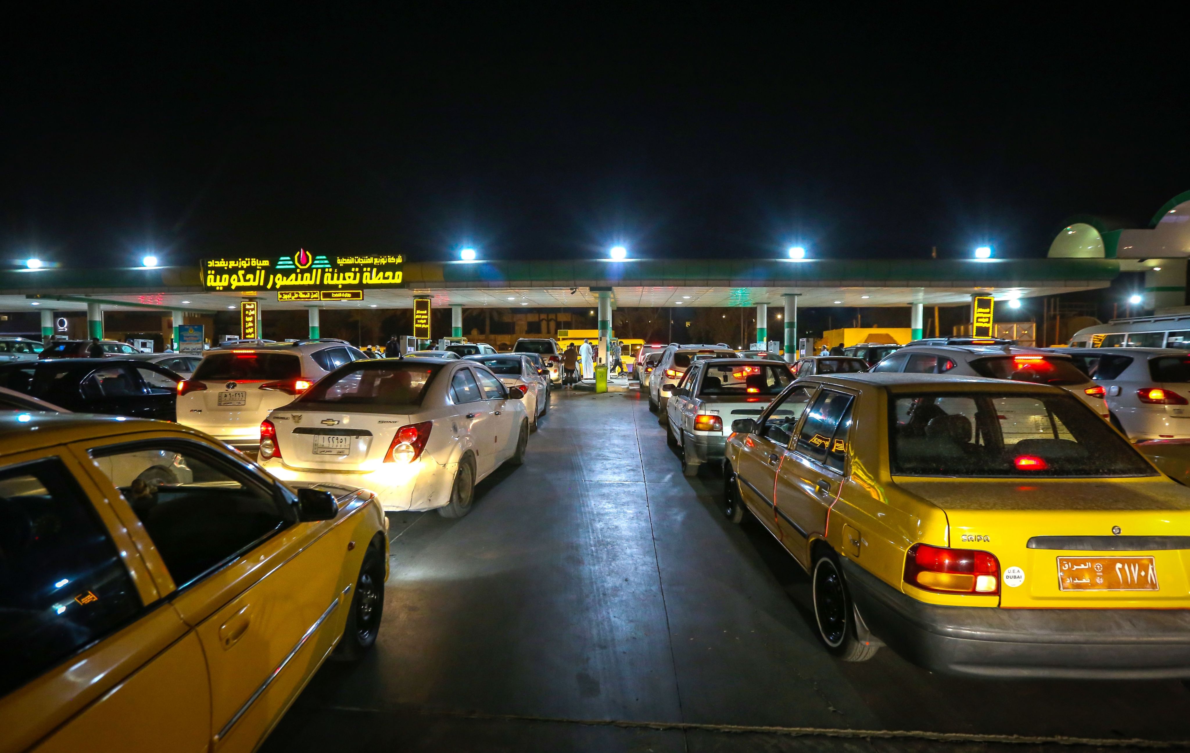 At one of Baghdad’s fuel stations, sales stopped due to an internet outage and that led to a chaotic and tense scene with hums of idling vehicles and occasional blares of car horns adding to the growing sense of frustration. Paying with bank cards was made mandatory at fuel stations this year.