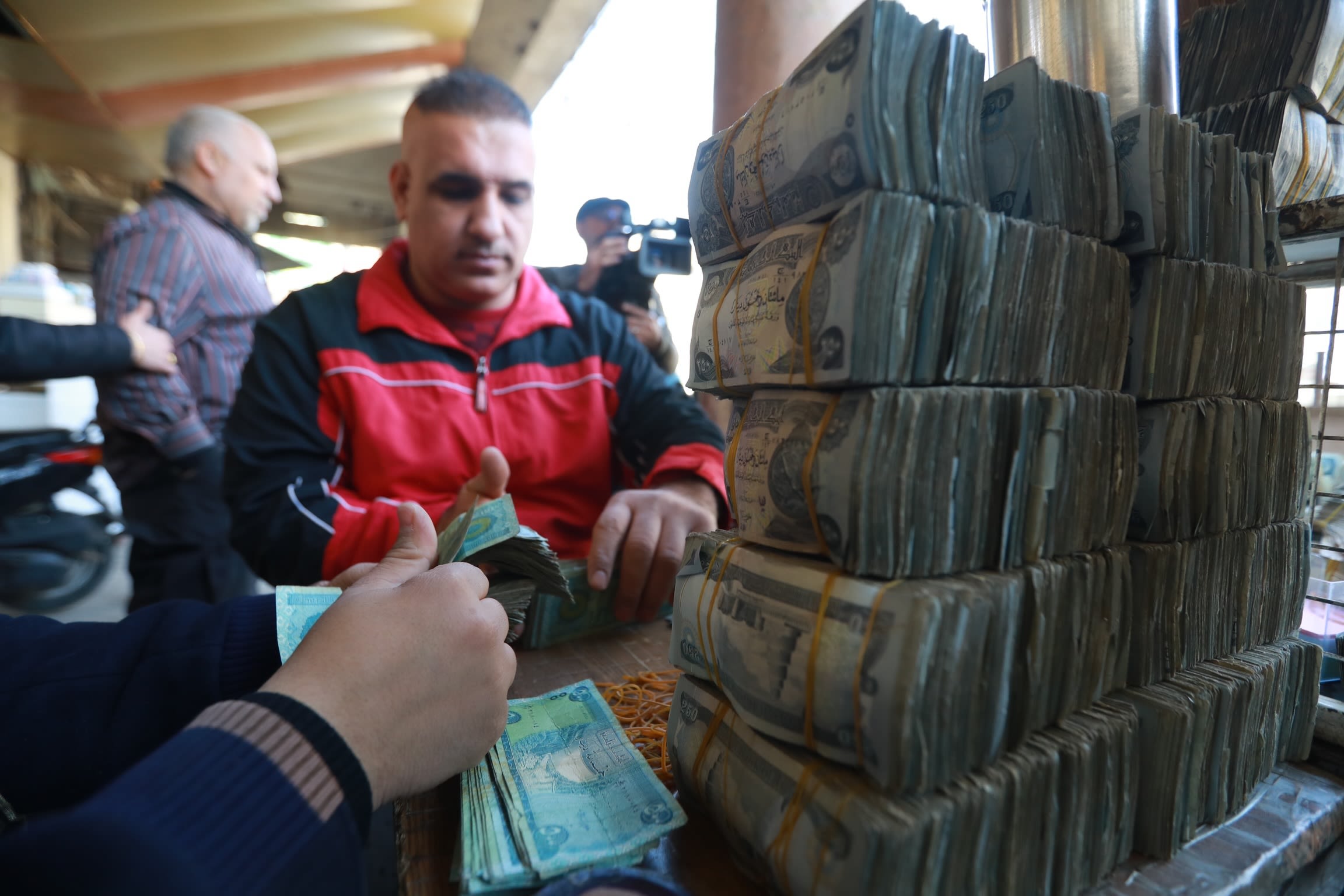 Iraqis buy and exchange foreign currency at an exchange office in Baghdad in January 2023. Getty Images