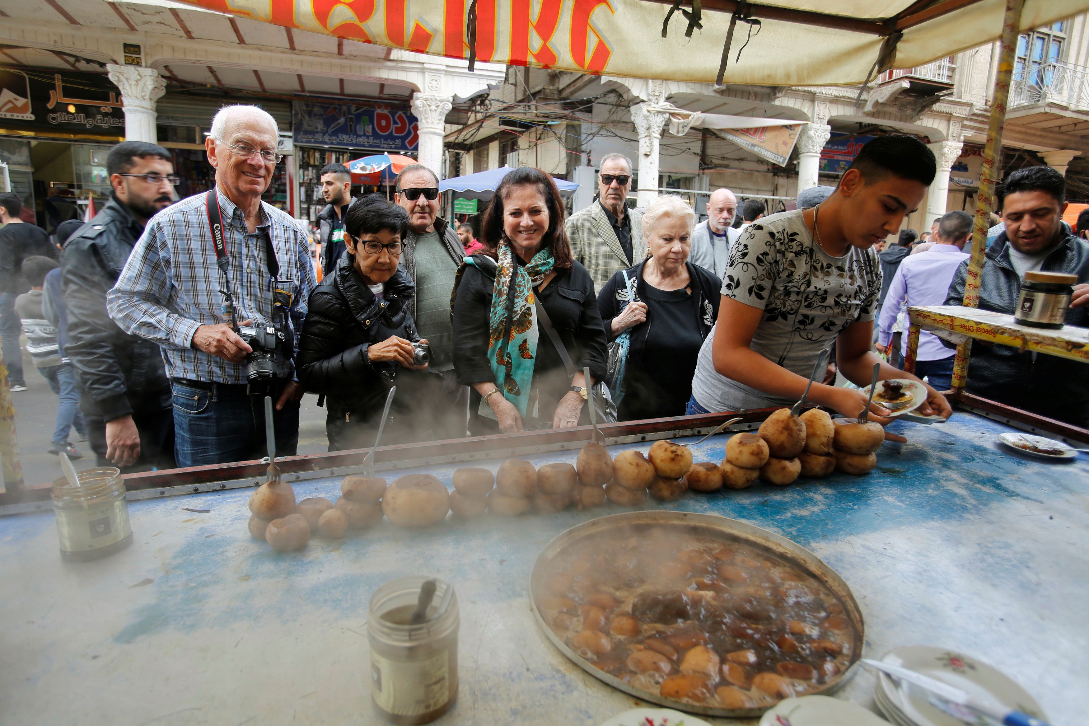 Genuine tourists on Mutanabbi Street in Baghdad. Some people gain access to dollars by falsely registering as travellers. Reuters