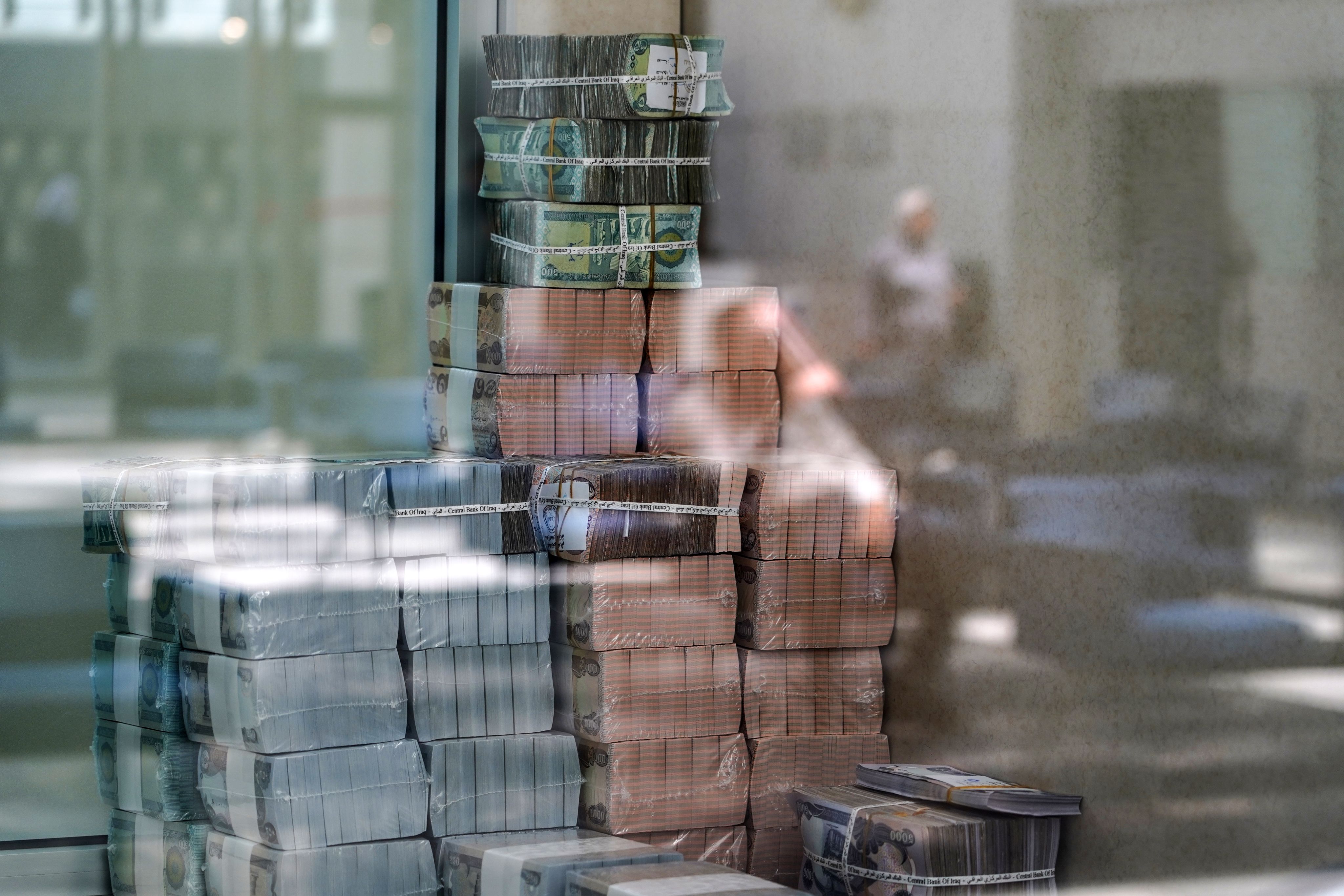 Money stacked inside Baghdad's Central Bank of Iraq. Aymen Al Ameri / The National
