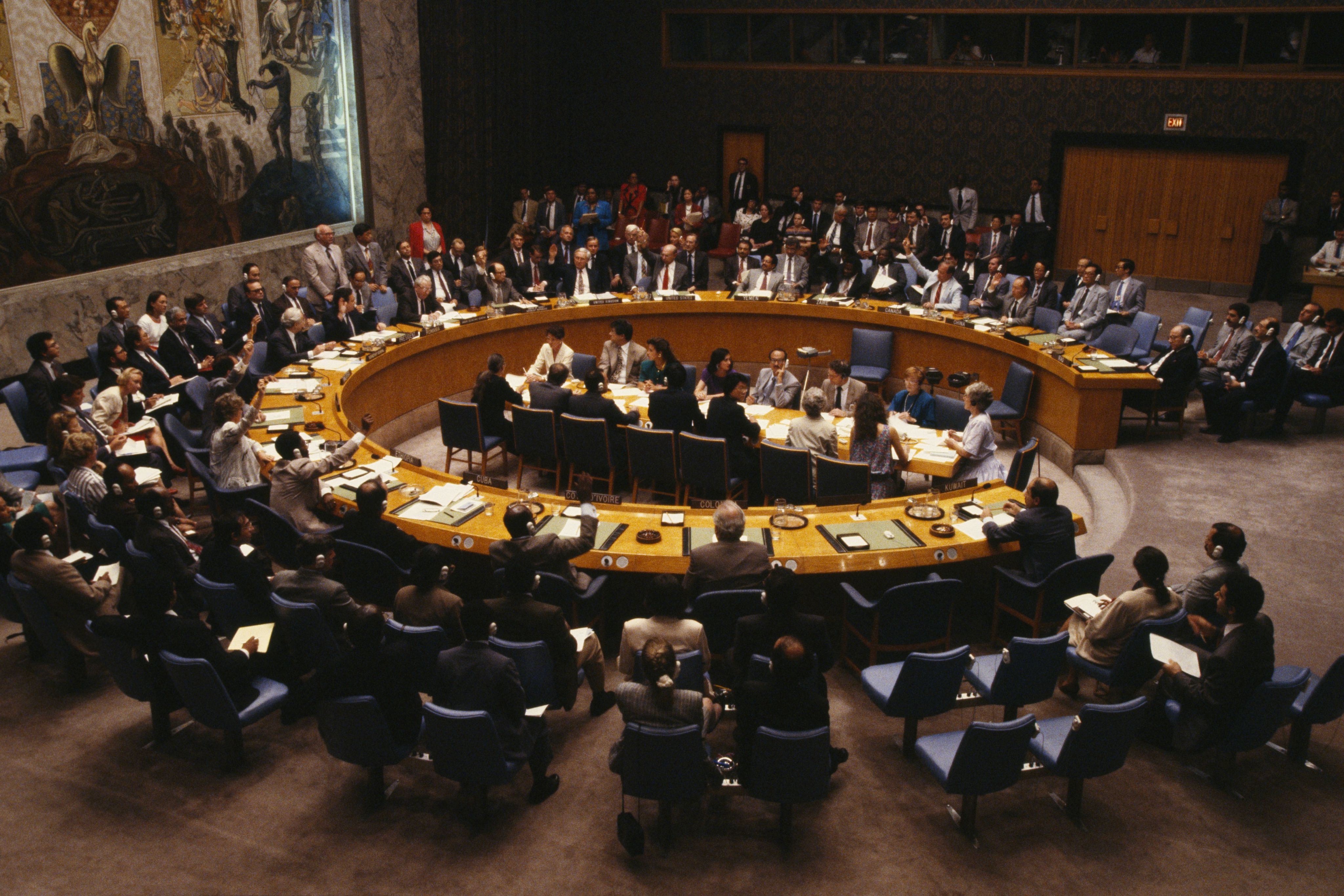 The UN Security Council votes to impose sanctions on Iraq after the 1990 invasion of Kuwait. Getty Images