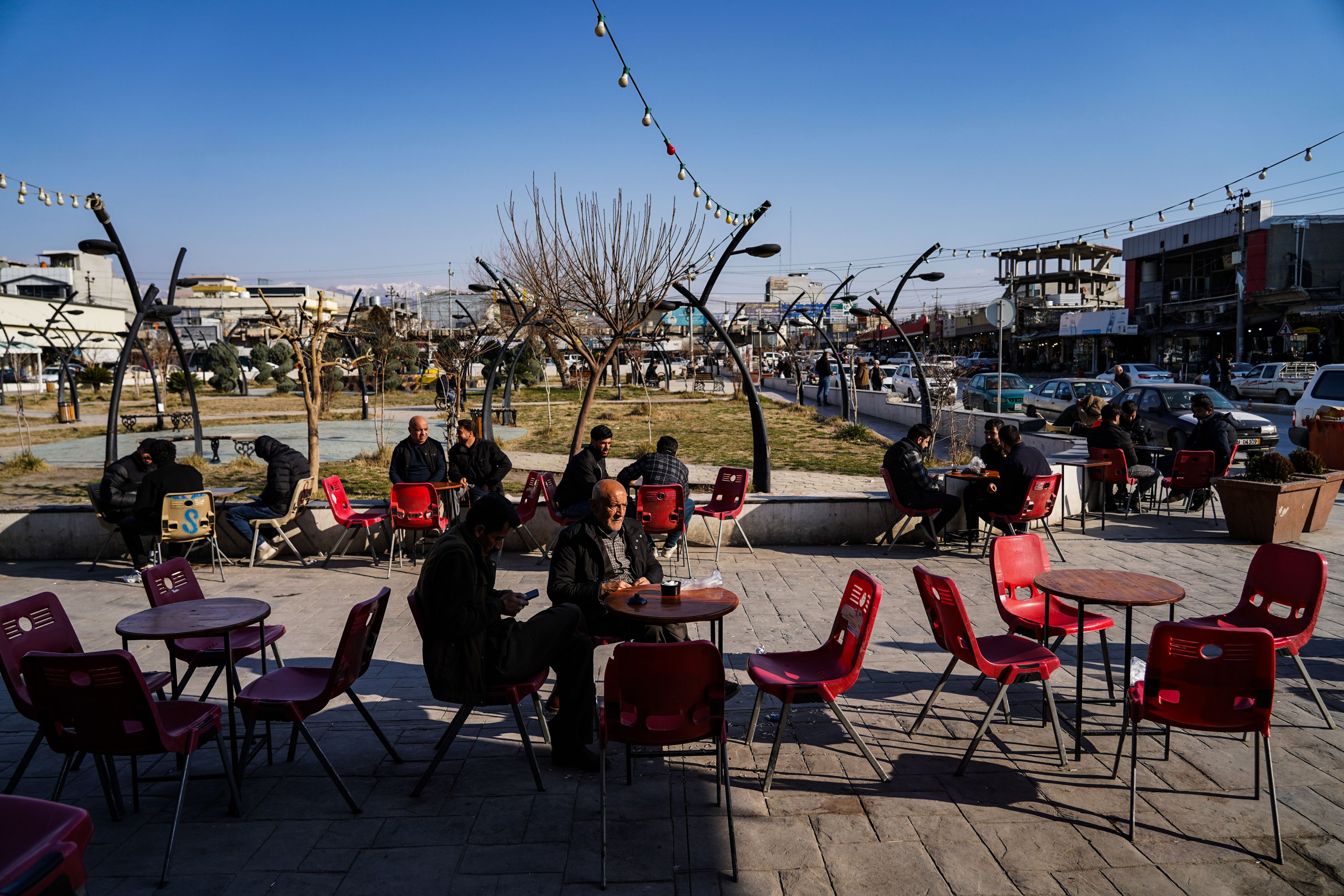 A cafe in Qaladze. The district is one of three in the Iraqi Kurdish region that lie at the heart of an international people smuggling network to Europe. Aymen Al-Ameri / The National
