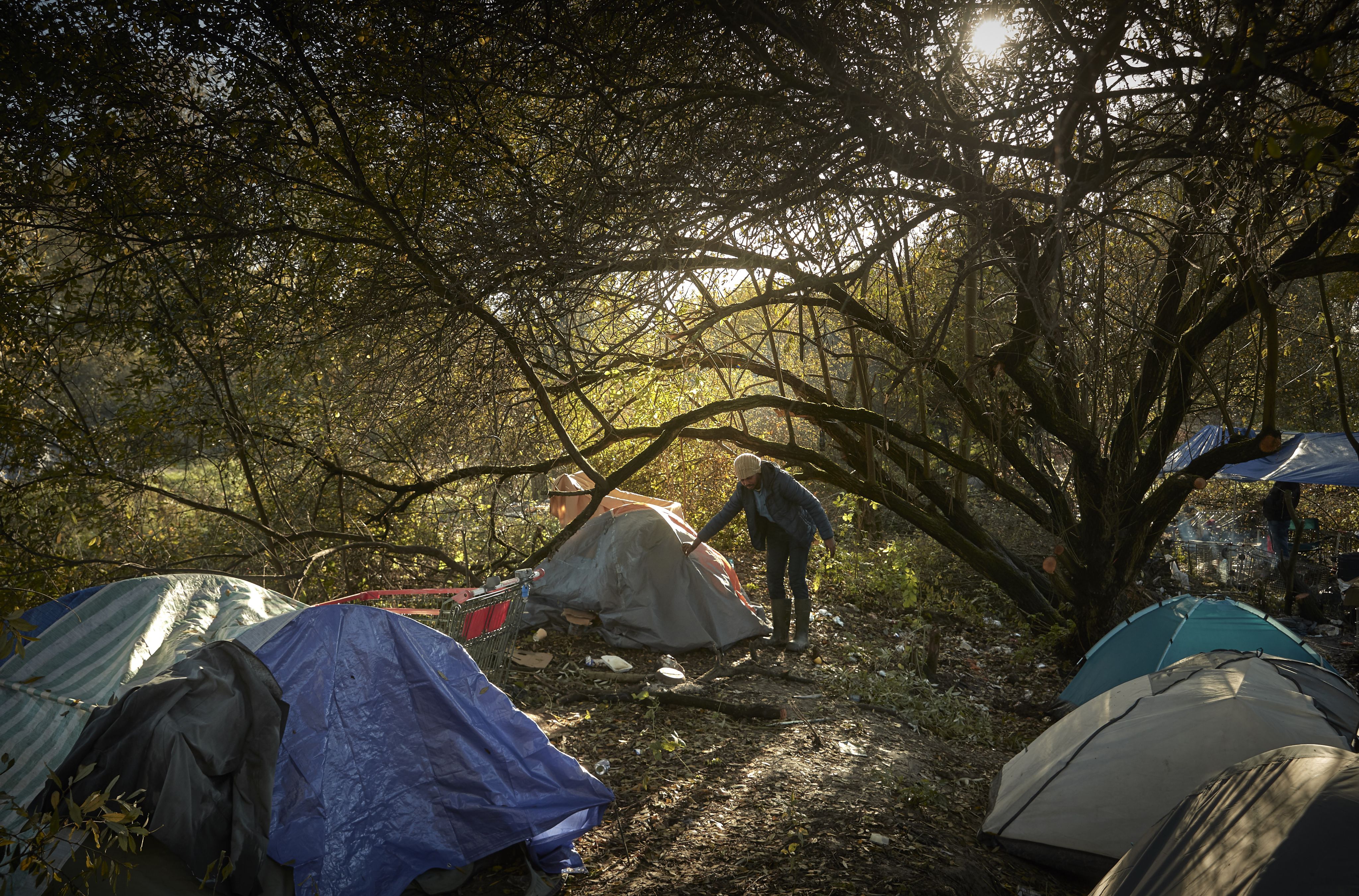 Any unfamiliar face walking through the tented areas dotted among the trees is greeted by suspicious stares.